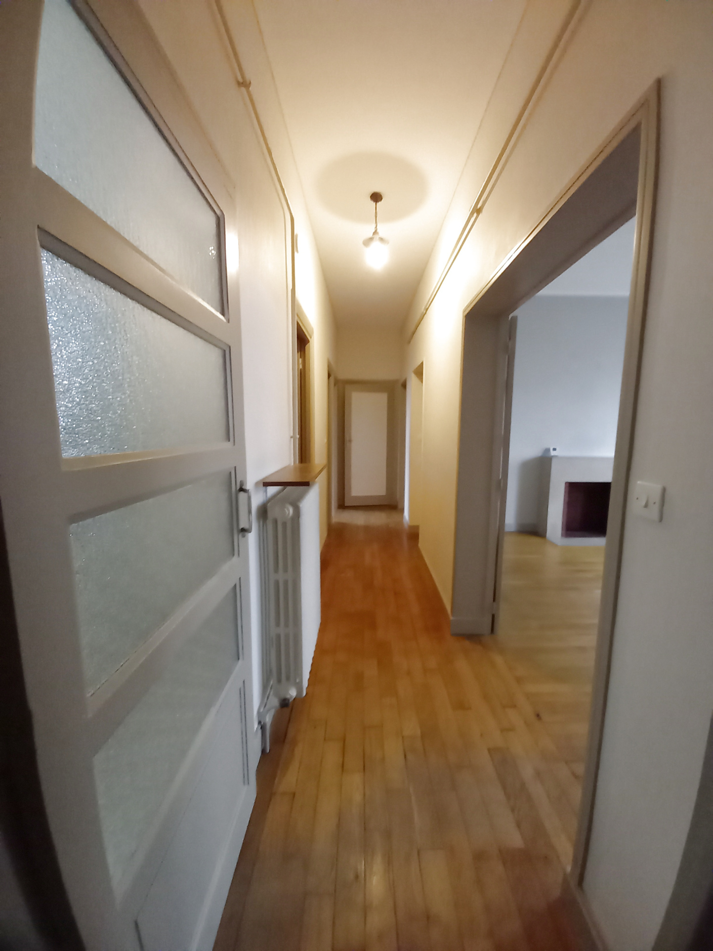 Coeur centre ville, en rez-de-chaussée : Appartement 75.54 m2 comprenant entrée sur couloir, cuisine aménagée, séjour parqueté, deux chambres spacieuses parquetées, salle de bains, wc. Avec cave et grenier.