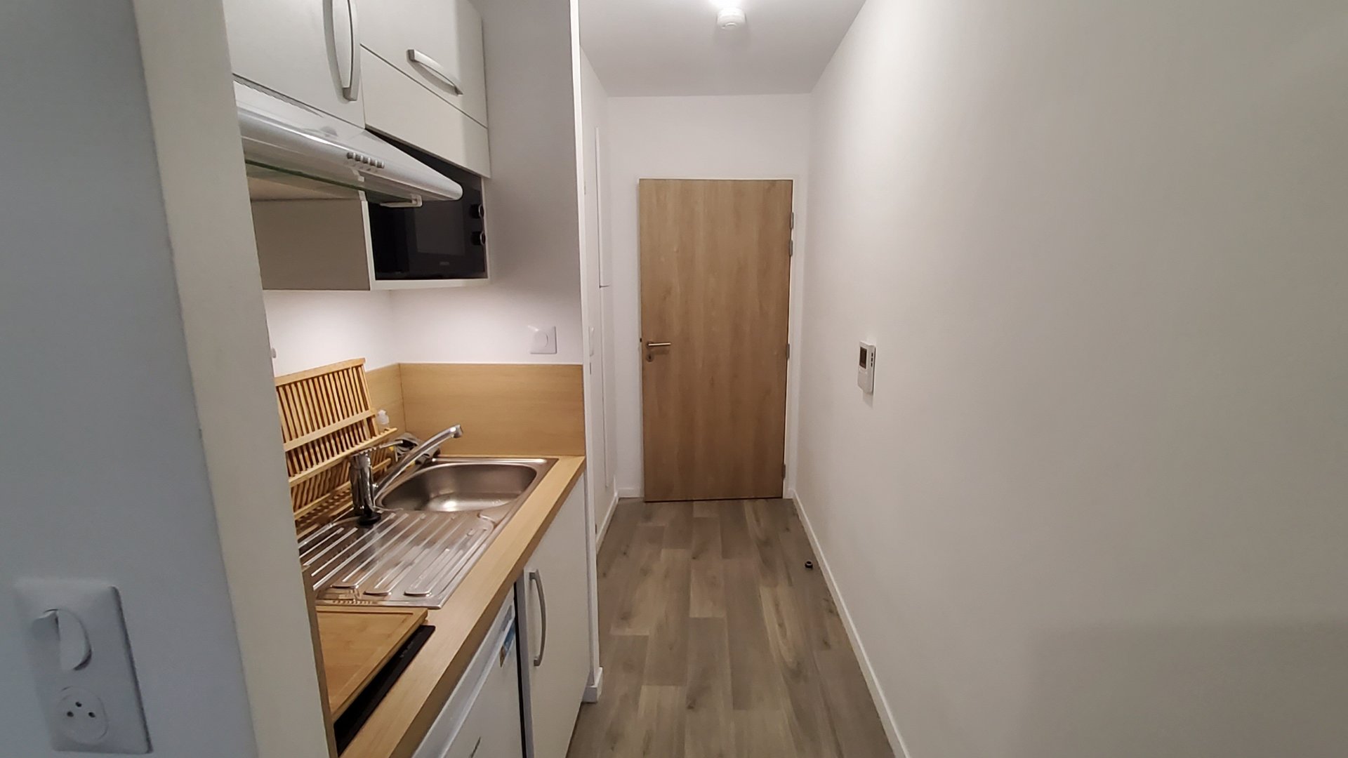 T1 bis meublé de 19 m² composé d'une pièce de vie équipée d'une kitchenette et d'une salle d'eau avec wc.