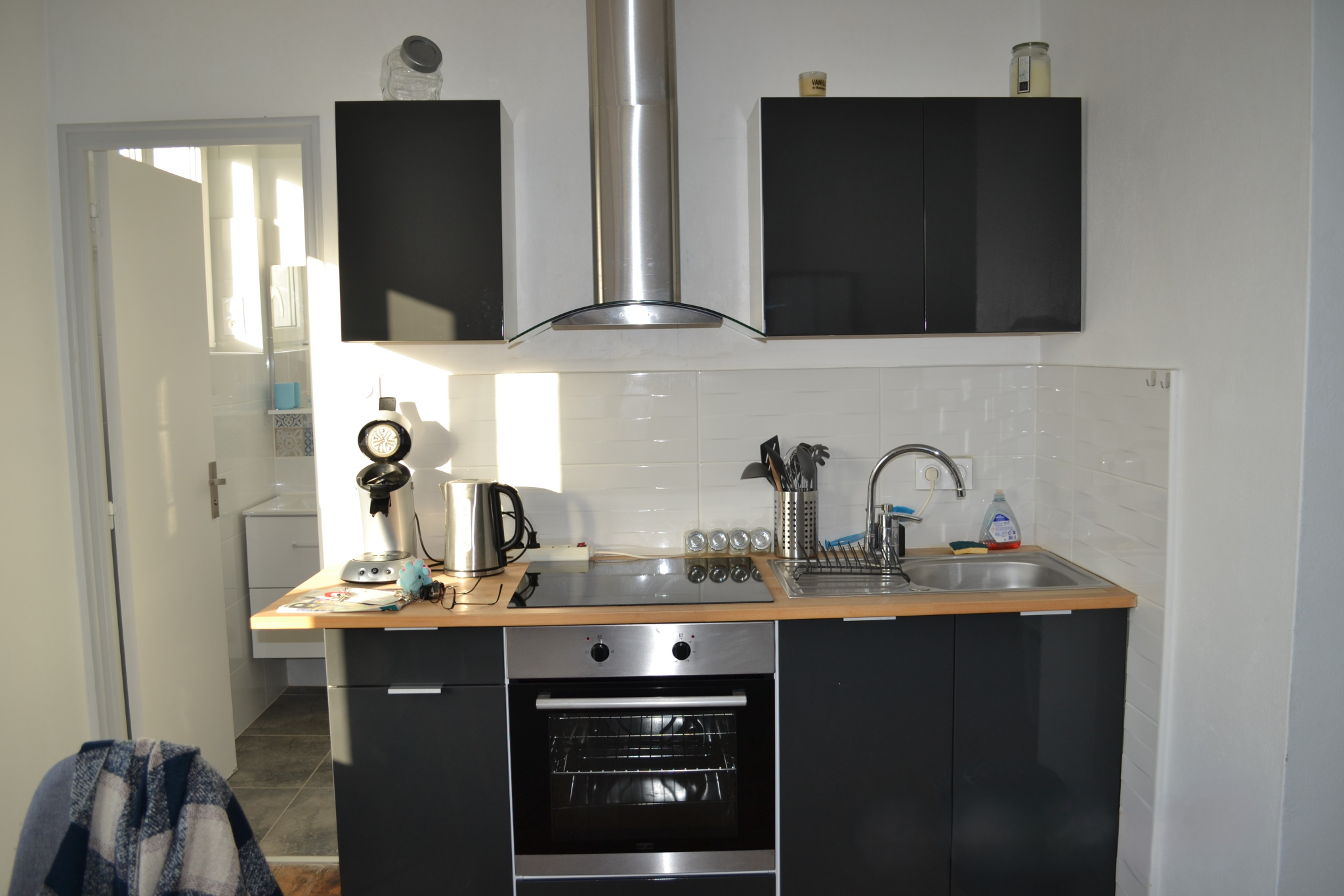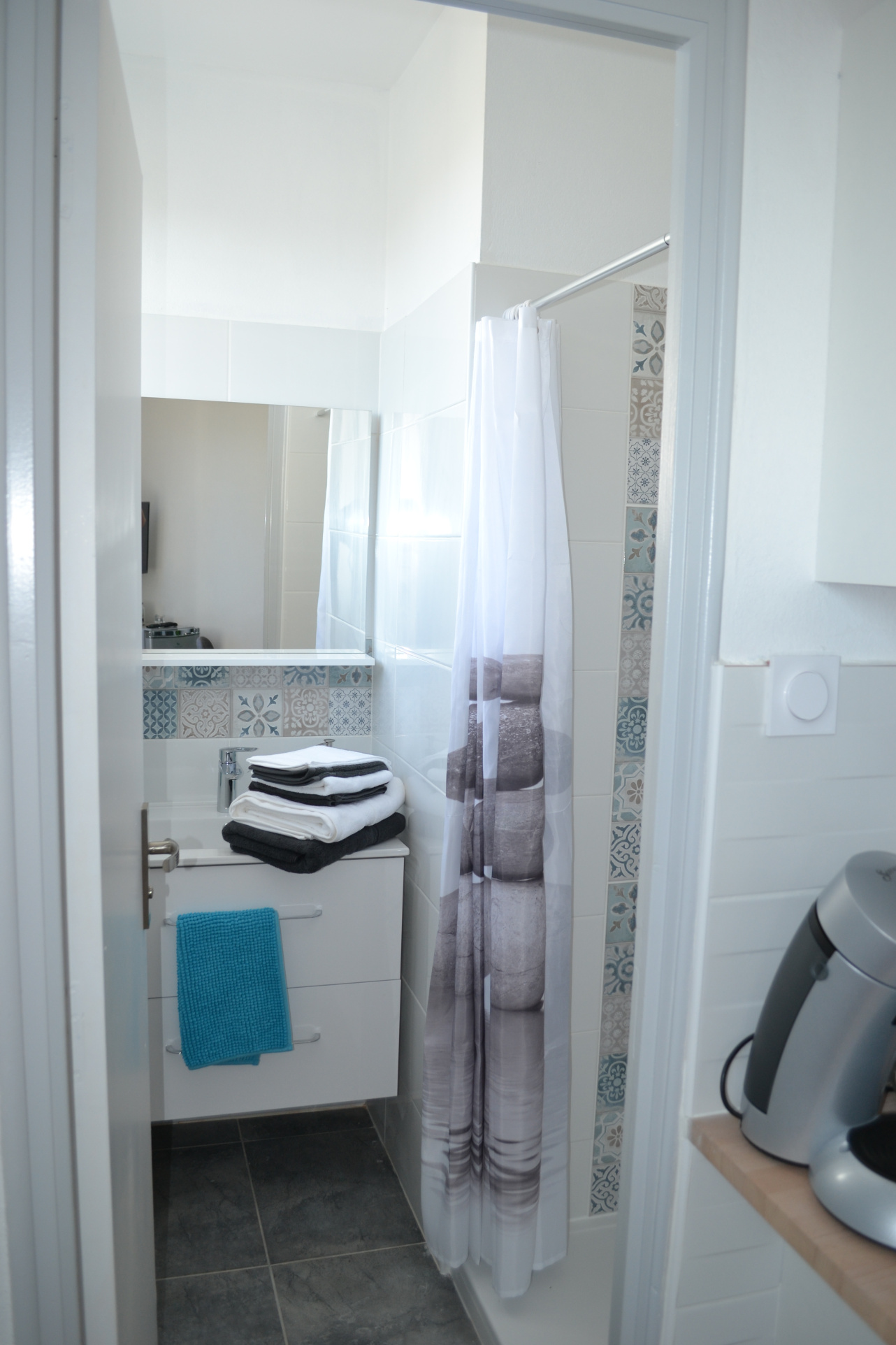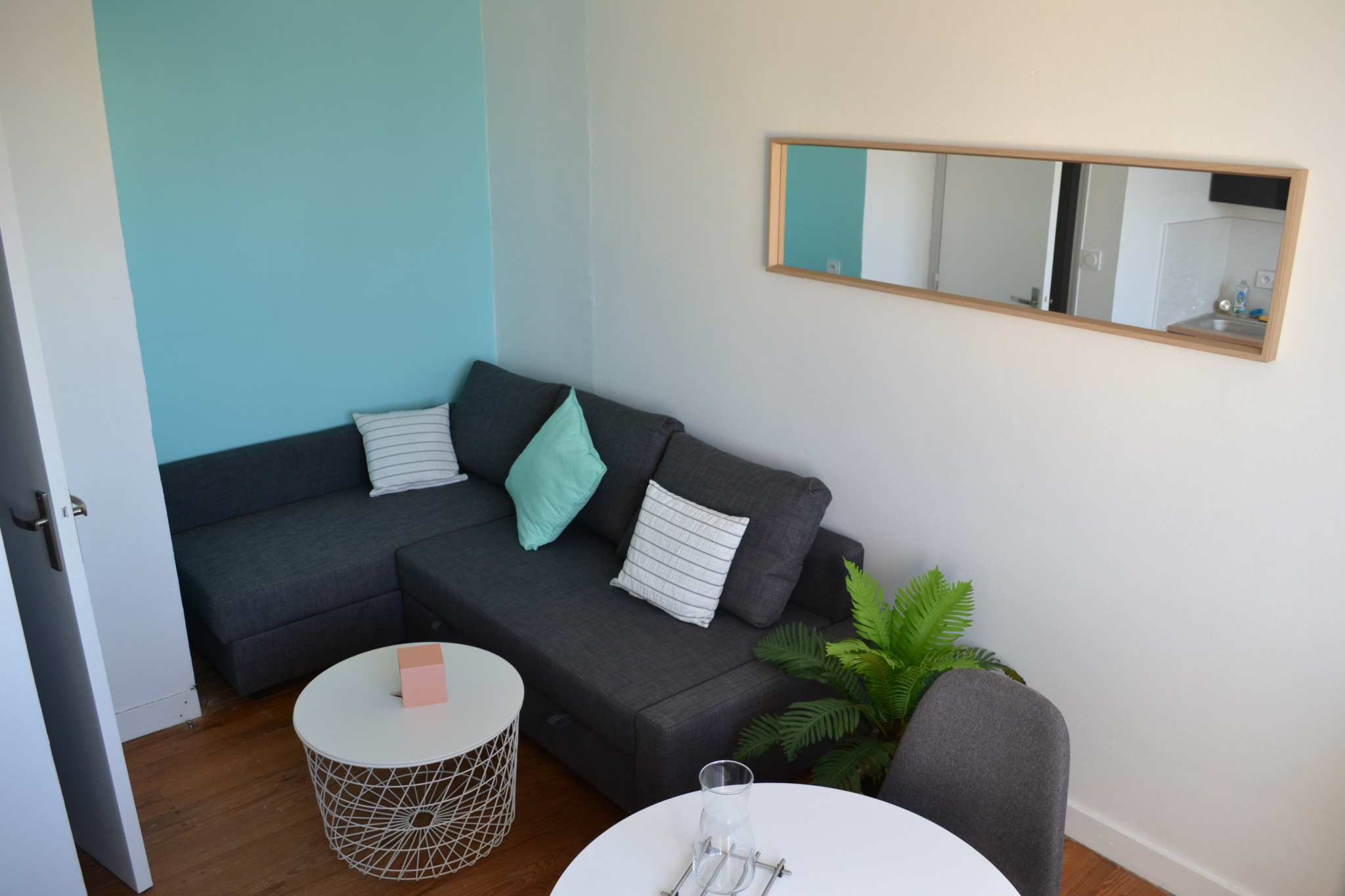 Appartement meublé situé au 1er étage d'une résidence privée, comprenant une pièce de vie équipée d'un coin cuisine aménagée et équipée, un coin salon, une chambre, une salle de douche , un W.C.