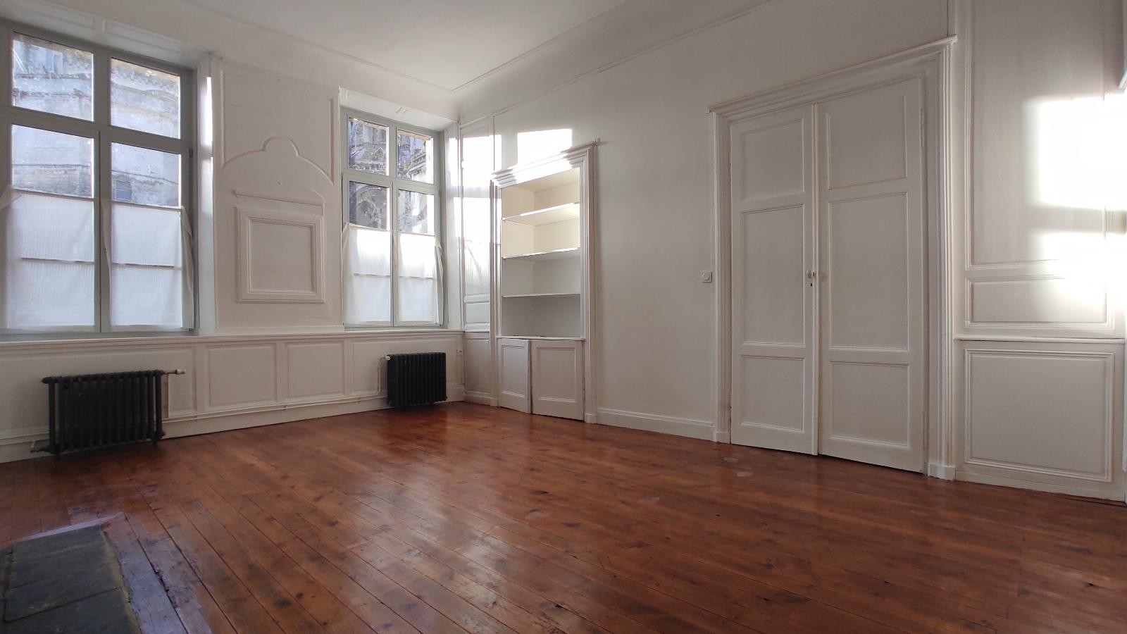 Situé au 3ème étage d'un petit immeuble calme, joli appartement de 60m² situé en centre ville de Saint-Omer, trés spacieux et lumineux comprenant : grande piéce principale avec coin cuisine équipée (plaques, hotte, évier), une chambre, salle de bains avec...