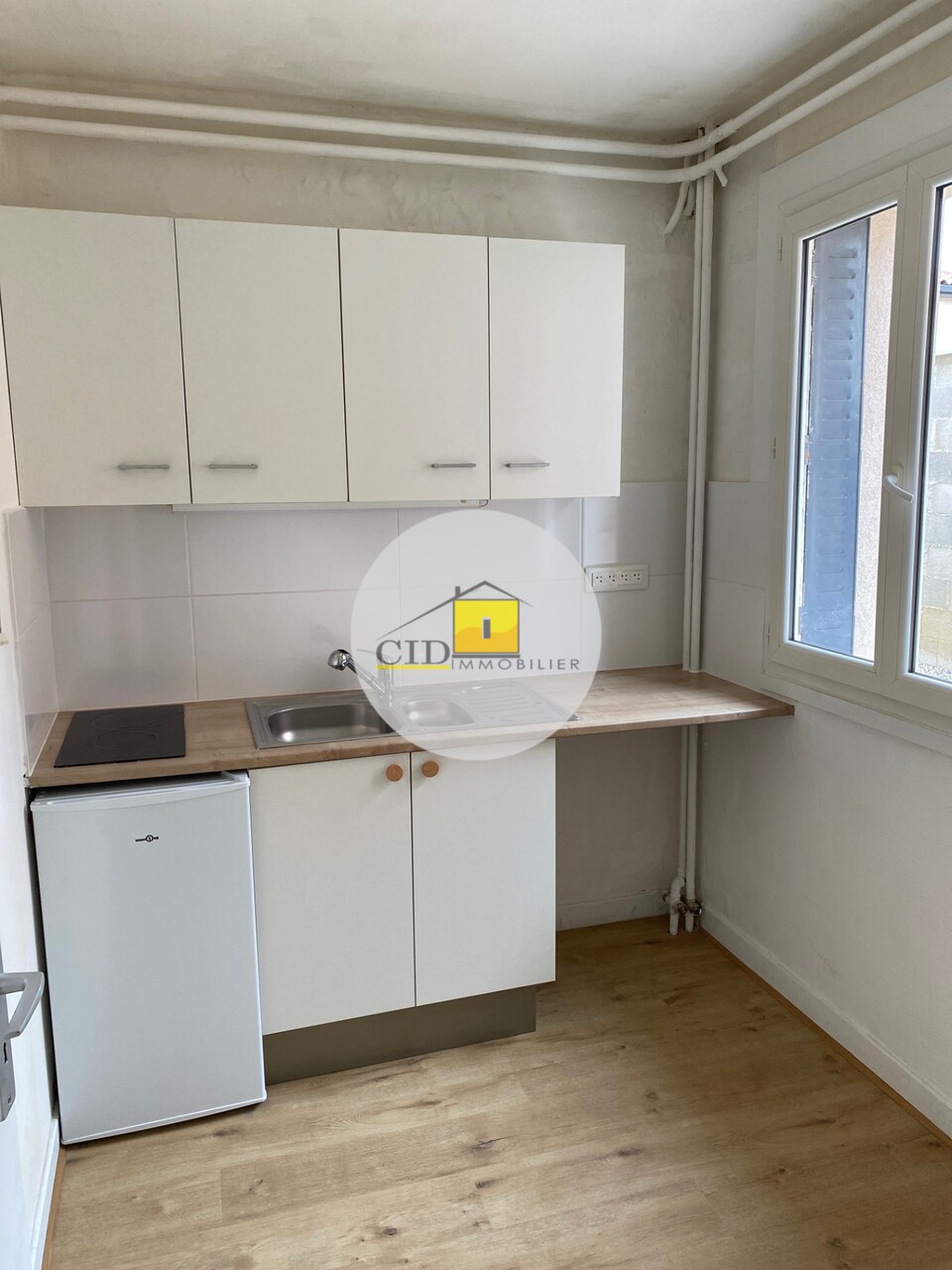 Comprenant hall avec placard, pièce principale avec coin cuisine aménagée (avec frigo et plaque de cuisson), salle d'eau avec WC.