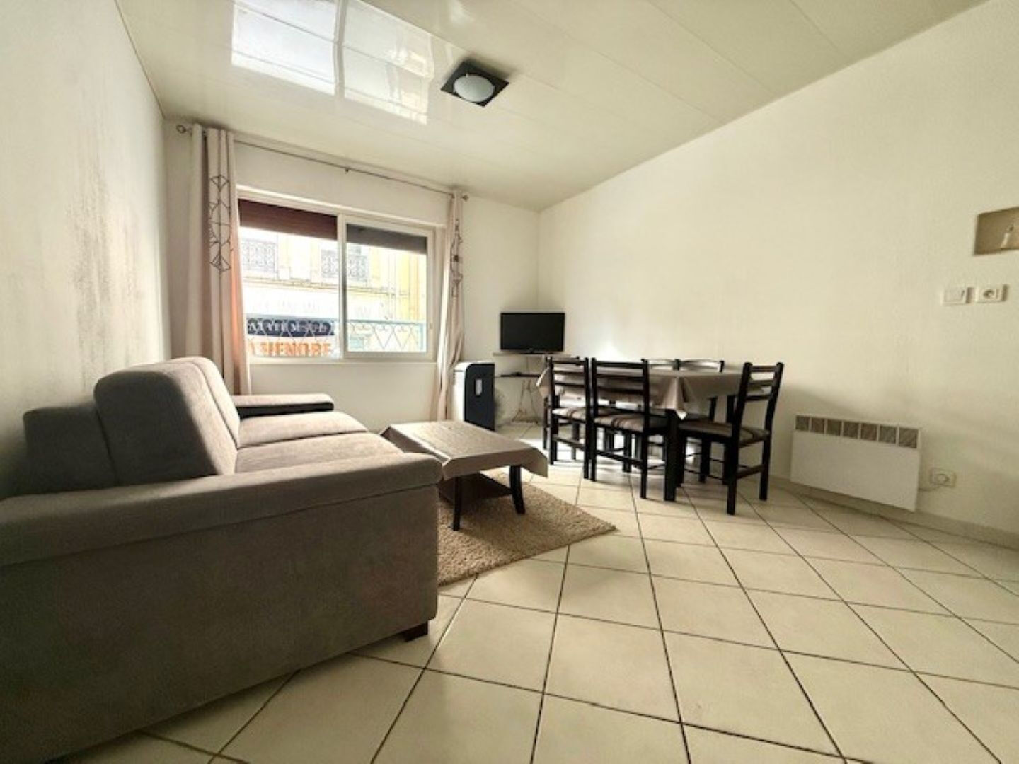 Le studio lumineux comprend un séjour avec une cuisine aménagée et équipée d'une plaque de cuisson, un frigo top, une sall...