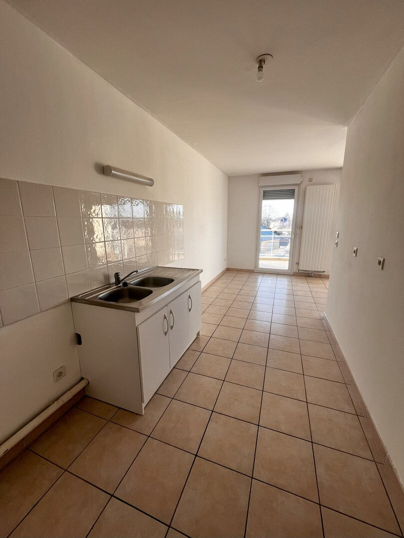 Appartement avec interphone situé au 2ème étage comprenant : entrée avec placard, cellier, pièce principale avec coin cuisine (accès grand balcon), 2 chambres dont 1 avec placard, WC, salle de bains. Chauffage ind.gaz. Cave.