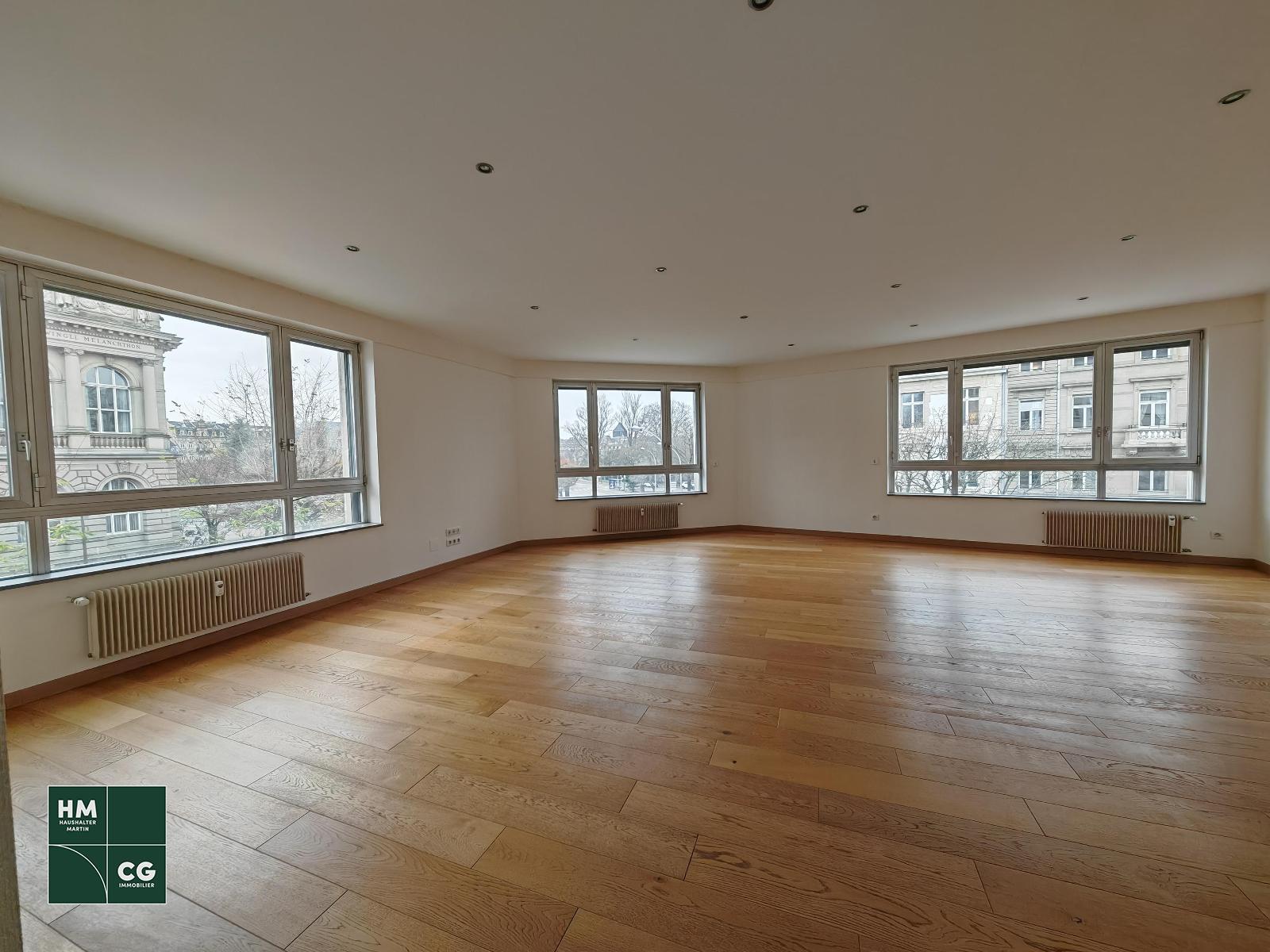 Immoval vous propose, rue René Schikelé, un spacieux 4P. de 147,30m² au 1er étage avec ascenseur. Ce bien comprend un très grand salon/séjour avec terrasse sur toute la longueur, 2 grandes chambres, une cuisine indépendante équi...