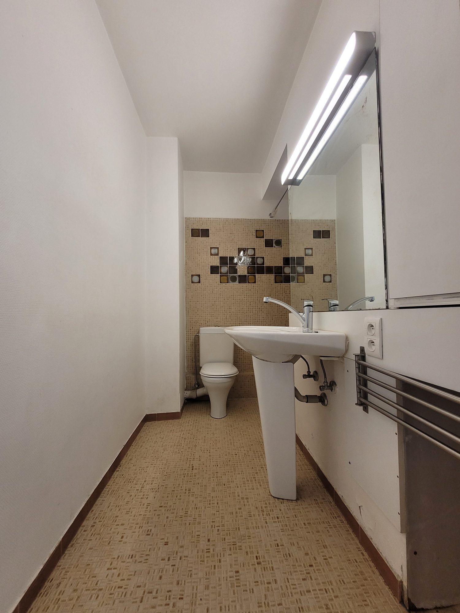 L'appartement se compose comme suit : une entrée, une salle de bains avec baignoire, un séjour avec coin kitch...