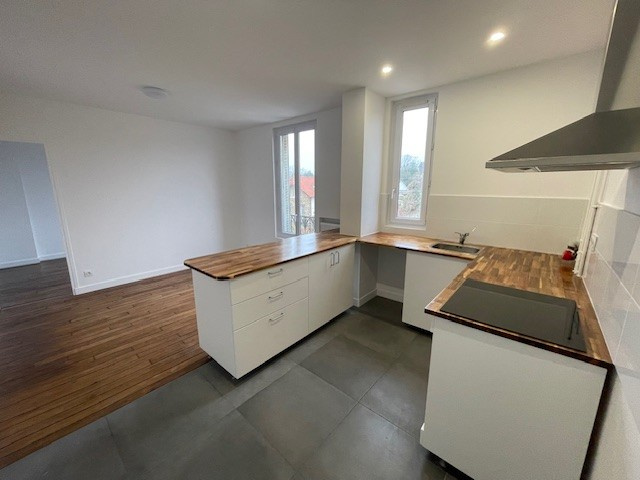 Une grande pièce principale avec cuisine ouverte aménagée (plaque de cuisson / hotte), 2 chambres, un dégagement ( espace TV ou bureau) e...