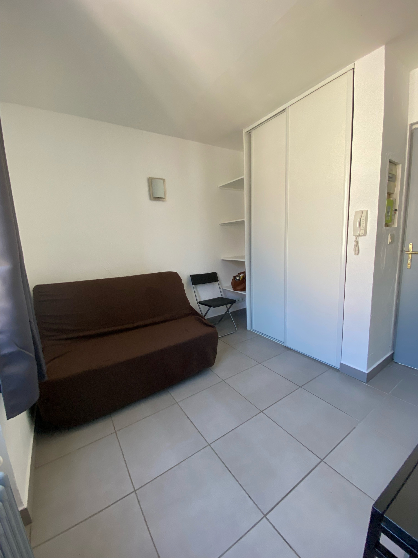 Dans une résidence fermée, au 1er étage, studio meublé comprenant séjour, kitchenette aménagée et semi-équipée (plaques et frigo) salle d'eau avec WC.