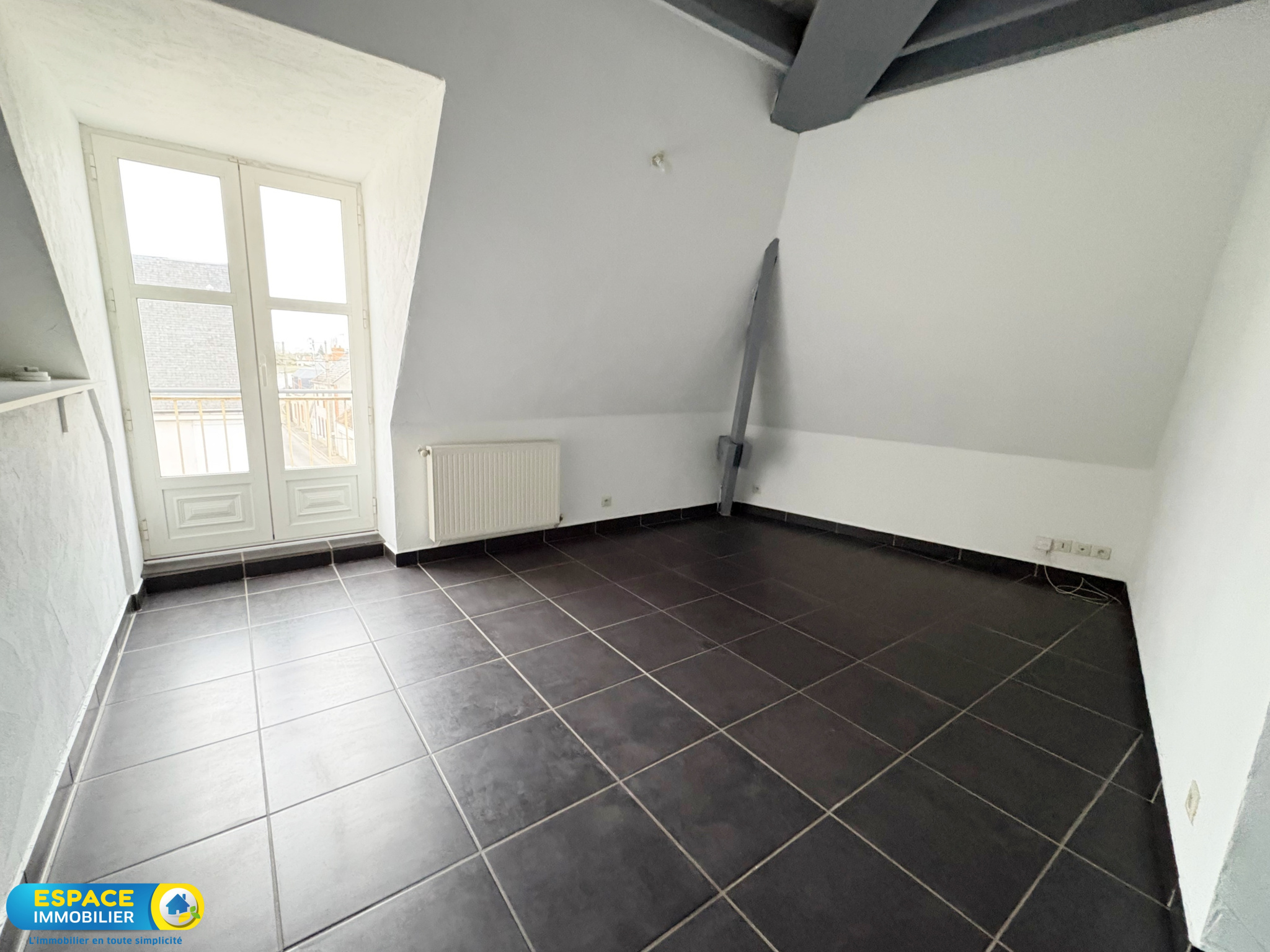 Centre de Sully sur Loire, appartement au 2ème étage d'une résidence fermée comprenant un séjour, une cuisine ouverte aménagée, un salon, une chambre avec placards, une salle de bains avec WC et deux pièces à l'étage.