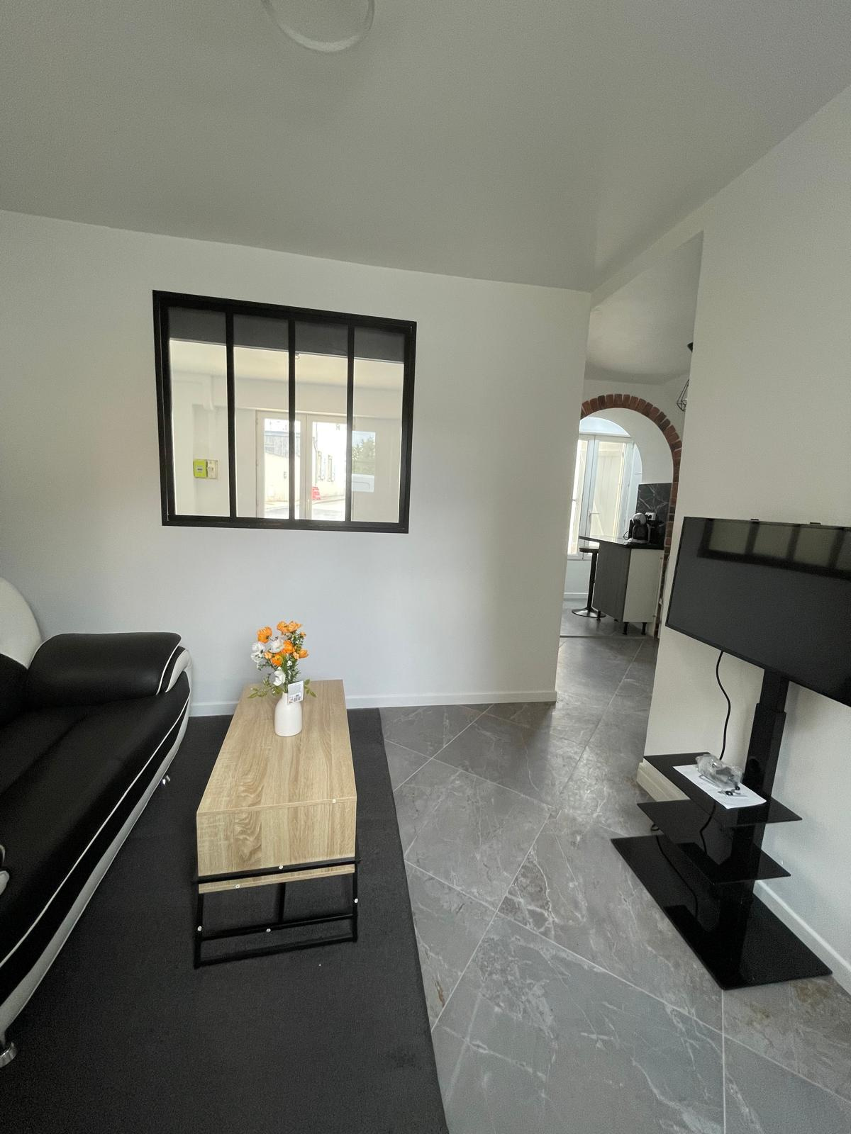 À Survilliers, appartement F2 de 31.25m2 meublé et refait à neuf en rez-de-chaussée avec vue dégagée, comprenant : une entrée sur séjour, une cuisine séparée, une chambre et une salle d'eau avec WC.
