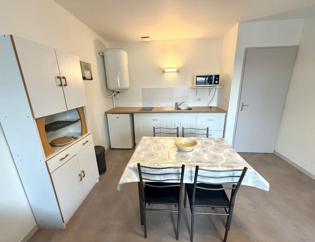 Studio meublé dans une résidence étudiante avec ascenseur comprenant une pièce principale avec coin kitchenette équipée, une salle d'eau avec wc. La résidence est équipée d'une laverie.