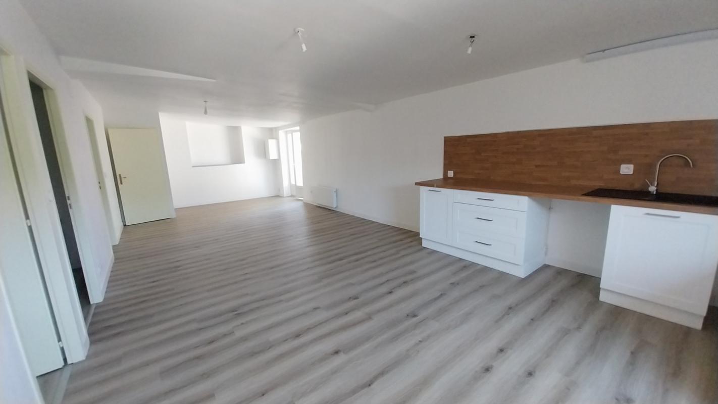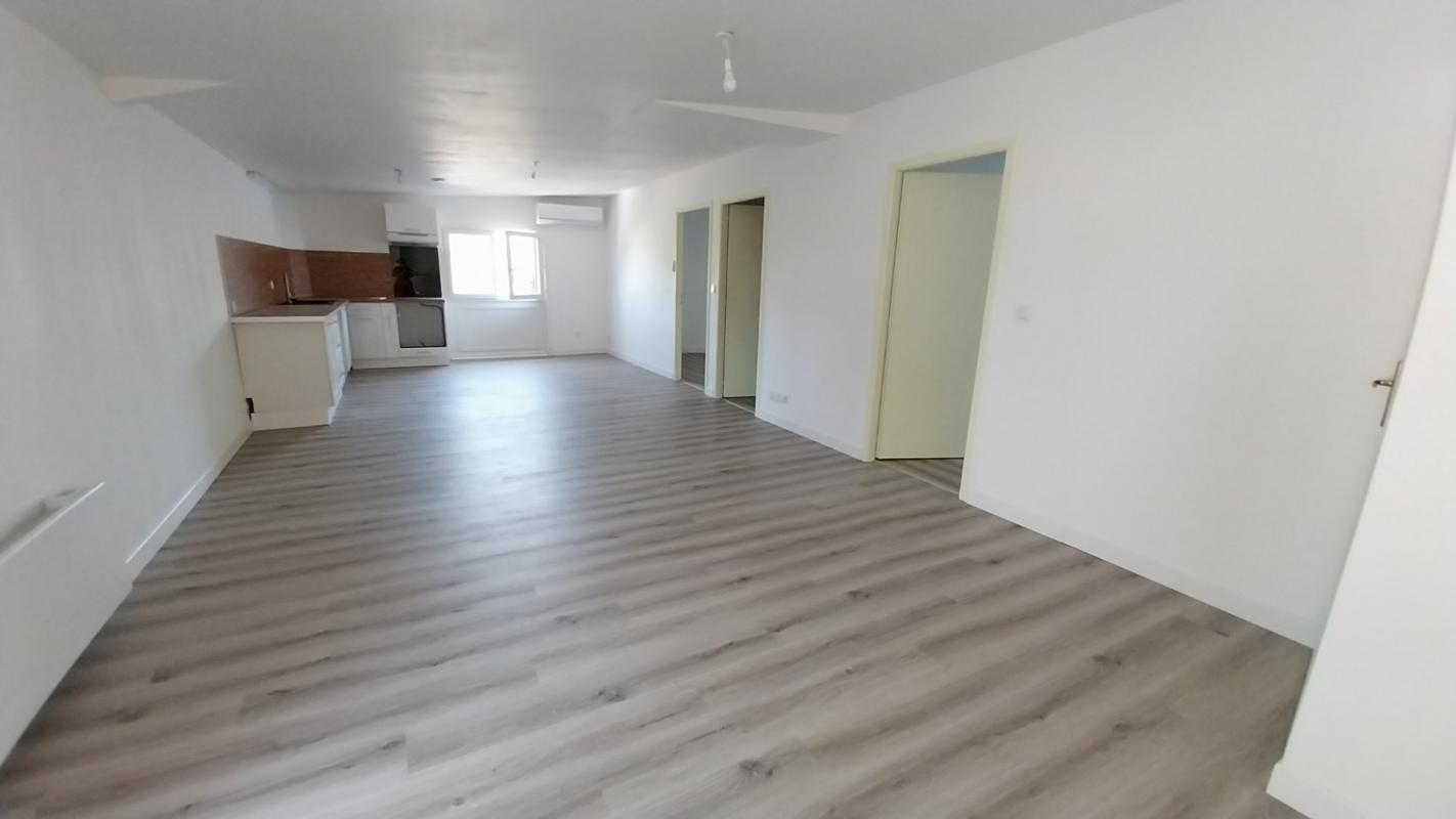 Appartement située en rerz de chaussée de 80 m² habitables, avec son entrée individuelle, il se compose d'un séjour, cuisine ouverte aménagée, deux chambres, salle d'eau et pas de porte. Libre de suite.
