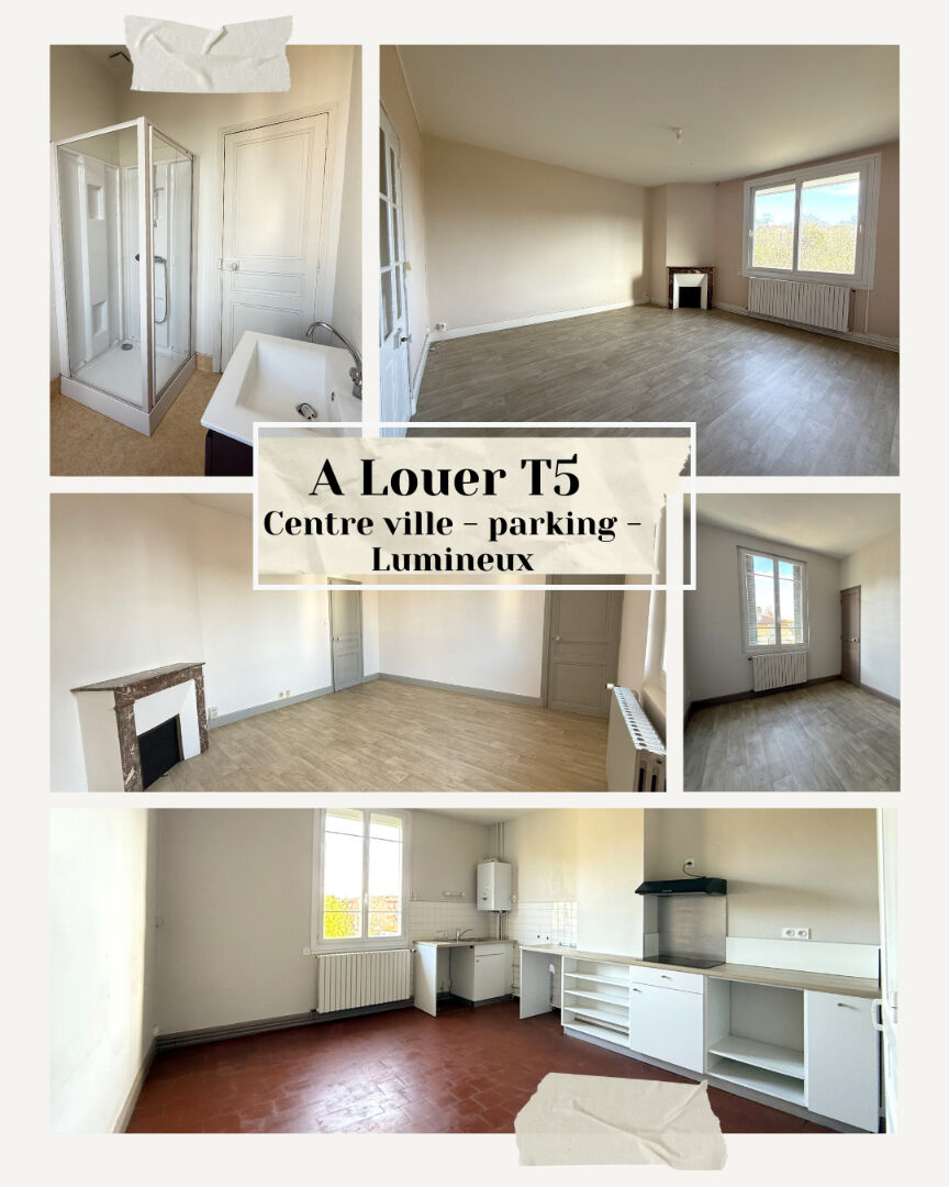 Sapiac, bel appartement T5 à louer au 2è étage composé d'une entrée, une cuisine indépendante équipée et aménagée, un grand séjour, 4 chambres, deux salles d'eau.