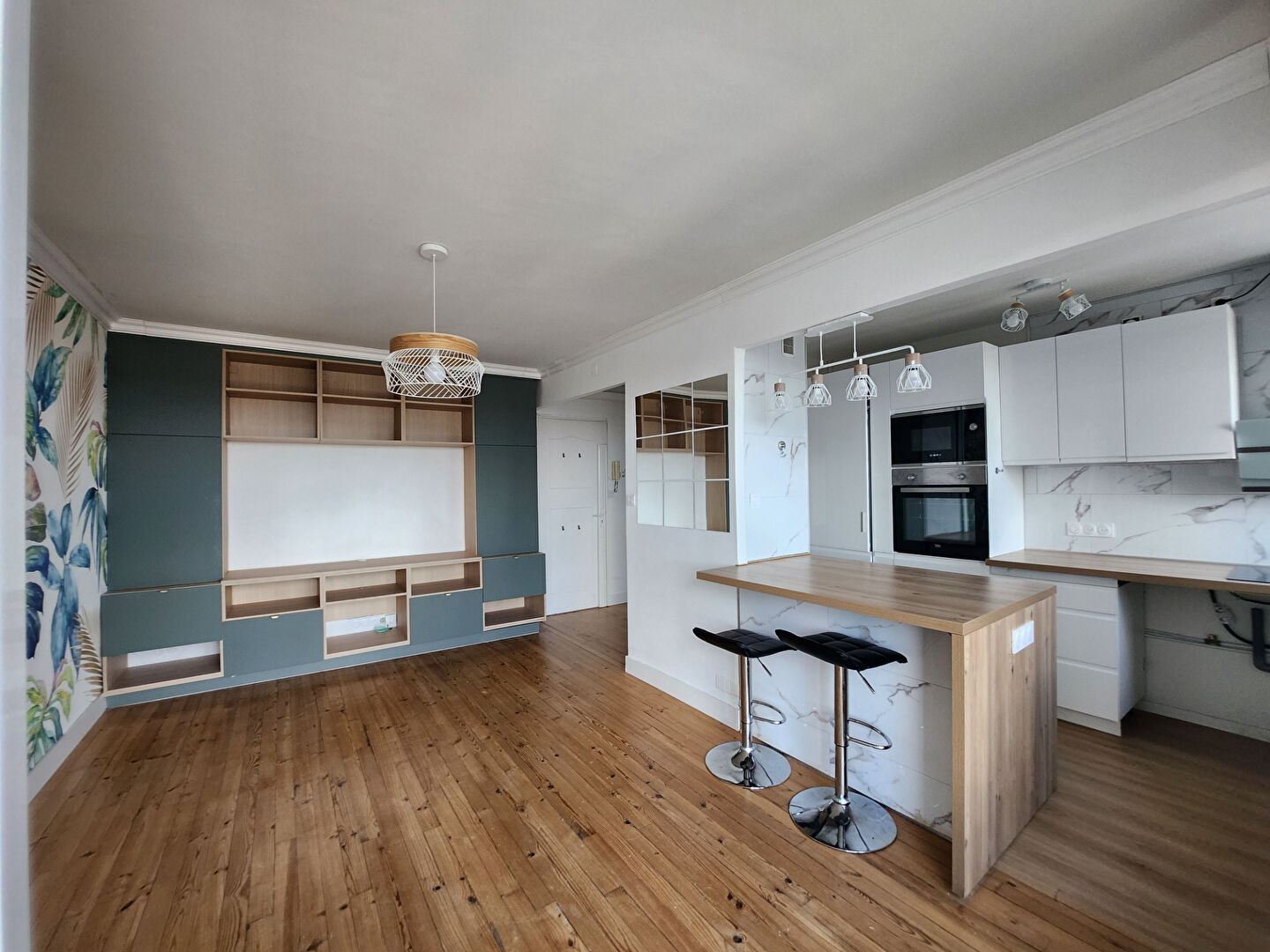 (GA) Côté Particuliers vous propose un appartement T3 de 59.73m² refait à neuf, comprenant une entrée donnant sur un séjour avec une cuisine ouverte équipée.