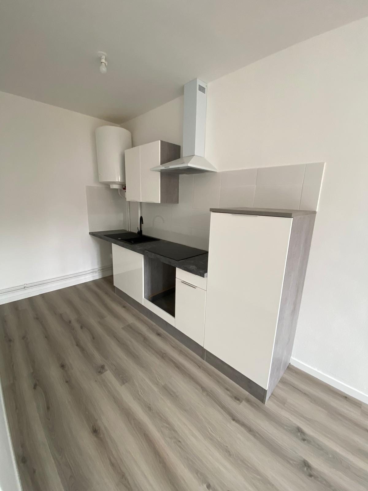 A louer appartement T1 en centre ville, Place Nationale, au 1er étage composé d'une entrée, une pièce de vie avec cuisine équipée, une salle de bains.