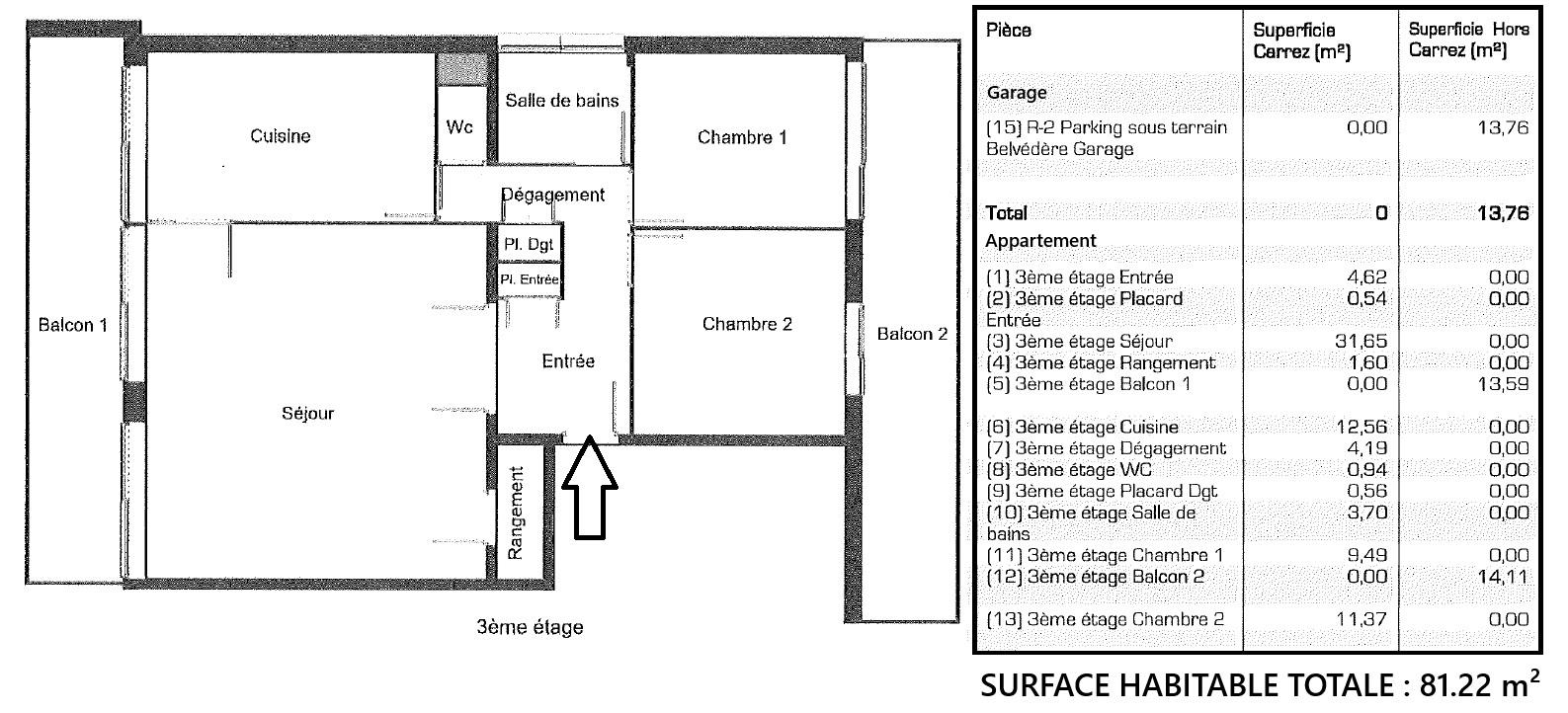 Dans une résidence de standing, livrée en 2025 et répondant aux dispositions de la RT 2012, superbe T4 transformé en T3 de 73.43m2 se composant de: