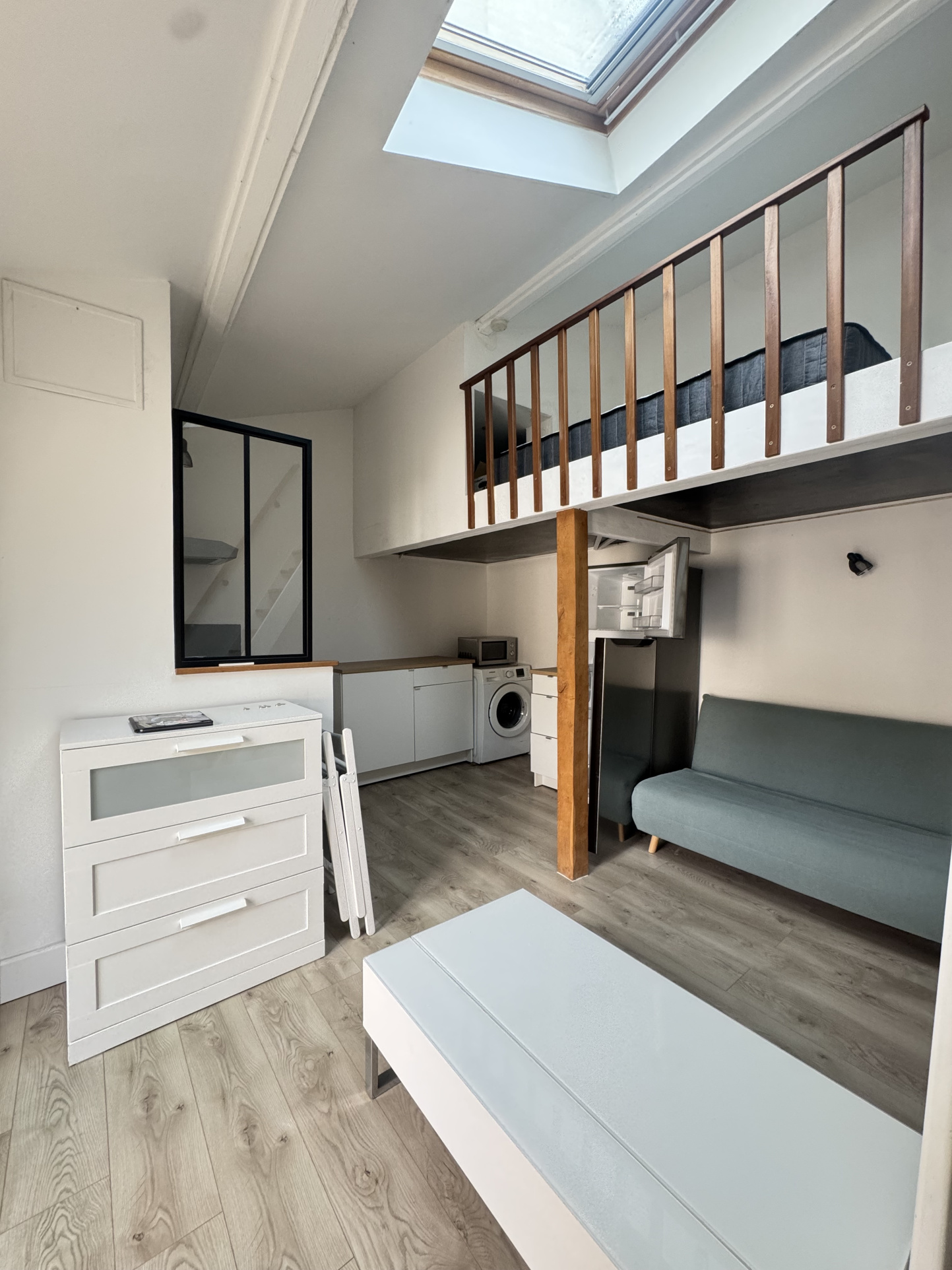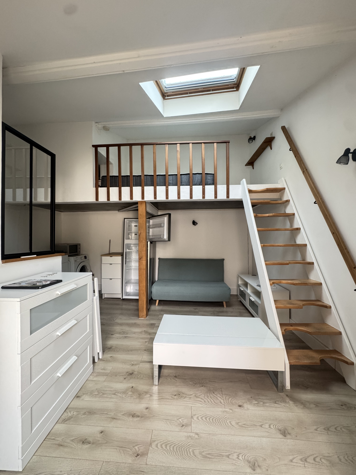 Un bel appartement meublé indépendant dans une cour d'une petite copropriété se composant d'une entrée sur séjour, cuisine aménagée et équipée, une salle d'eau et une mezanine. À moins de 10min à pied de la gare ( Ligne P ).