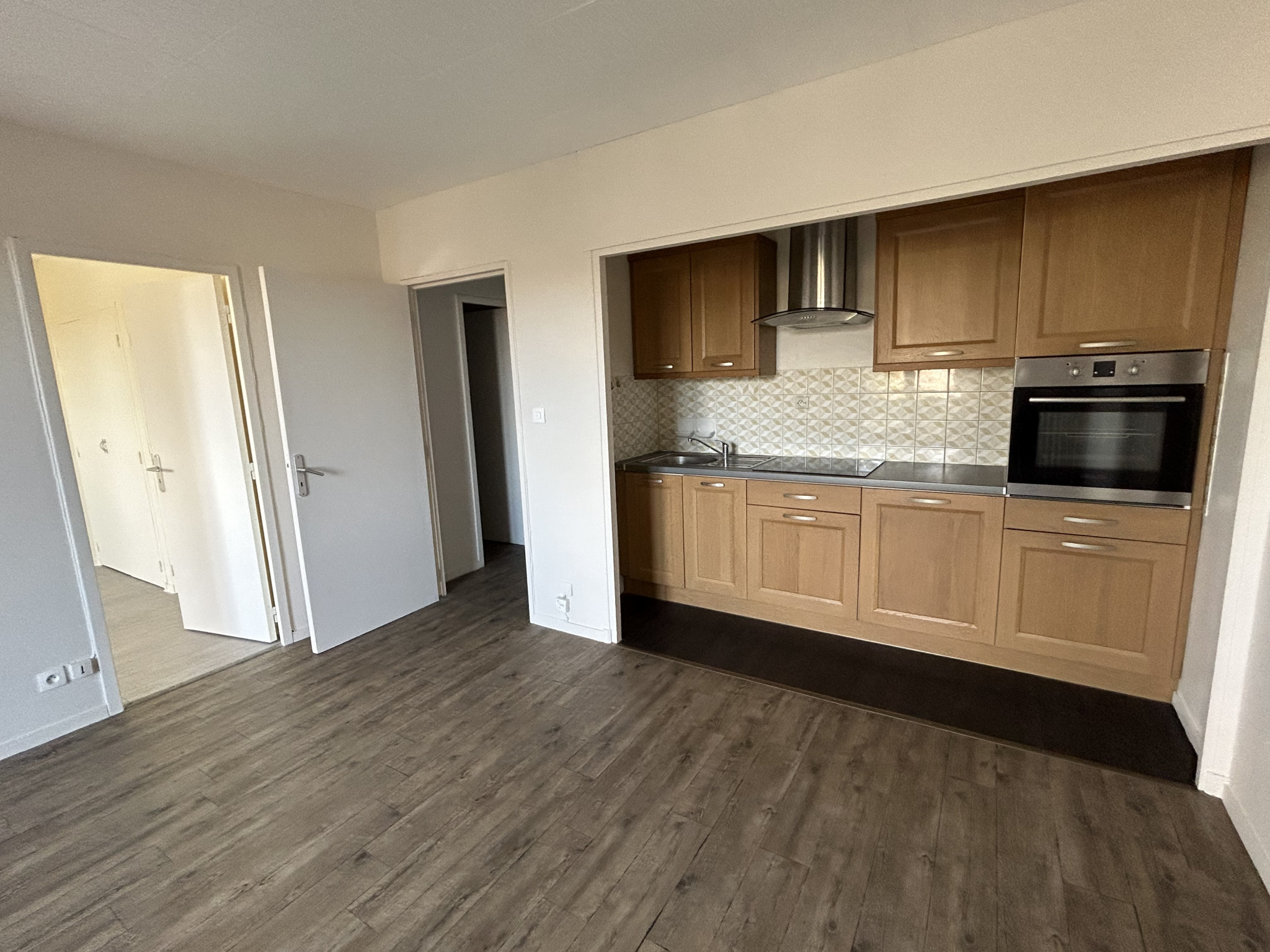 À louer, appartement 4 pièces situé au 2ème étage sans ascenseur qui se compose d'une entrée, pièce de vie, cuisine séparée (hotte, évier et meubles), débarras.