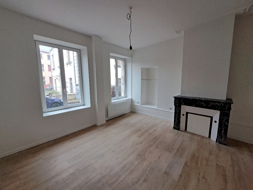Hyper centre ville de TOUL, rue Chanzy, appartement rénové d'environ 103m² habitables. Entrée, Cuisine aménagée ouverte sur Séjour, wc, Buanderie avec placard. A l'étage, Espace mezzanine, 3 Chambres, Salle de bains avec baignoire, douche et wc. Chau...