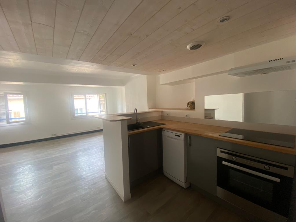 A louer quartier centre ville appartement type 2/3 d'une sur face de 59m2 entièrement rénové au 4éme étage sans ascenseur comprenant un cuisine aménagée et équipée ouverte sur un vaste séjour, 1 chambre, une deuxième pièce idéale bureau ou chambre bébé, u...