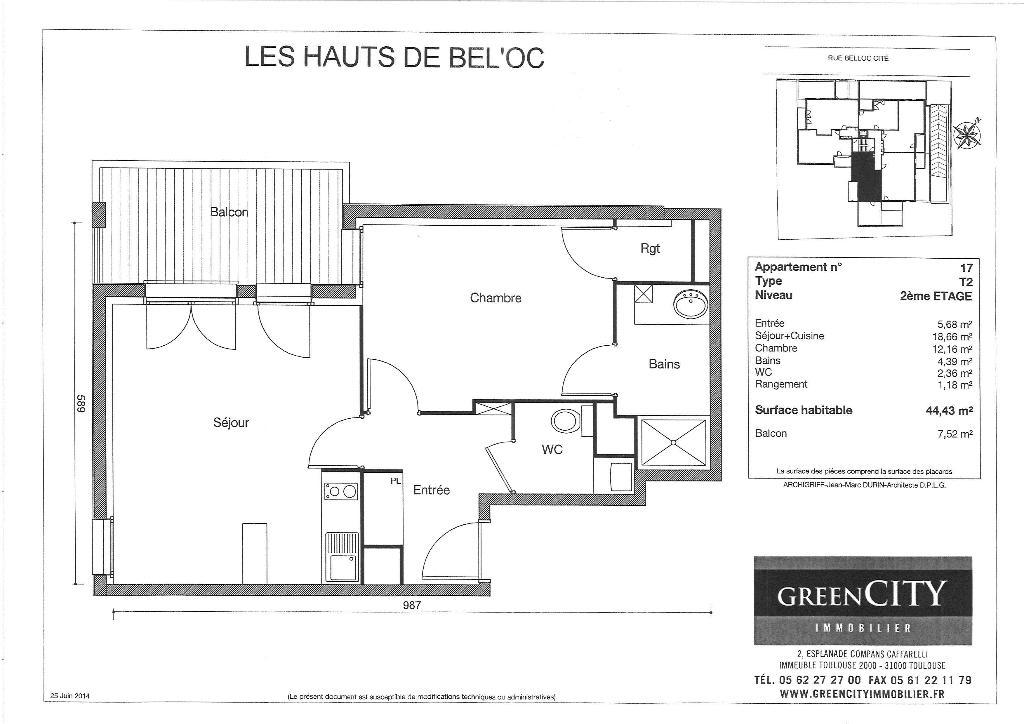Notre résidence idéalement située entre Toulouse et Launaguet. Visite virtuelle sur notre site ELYADE (Réf: 20093) Nous vous proposons ce T3 situé au 3ème étage composé d'une entrée, séjour avec cuisine équipée (évier inox, plaque 4 feux, hotte, meubles...