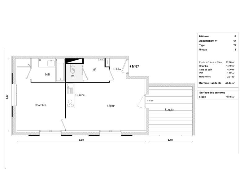 L'appartement se compose d'une entrée, un séjour avec espace cuisine aménagé, une chambre avec placard, une salle d'eau avec WC et une loggia av...