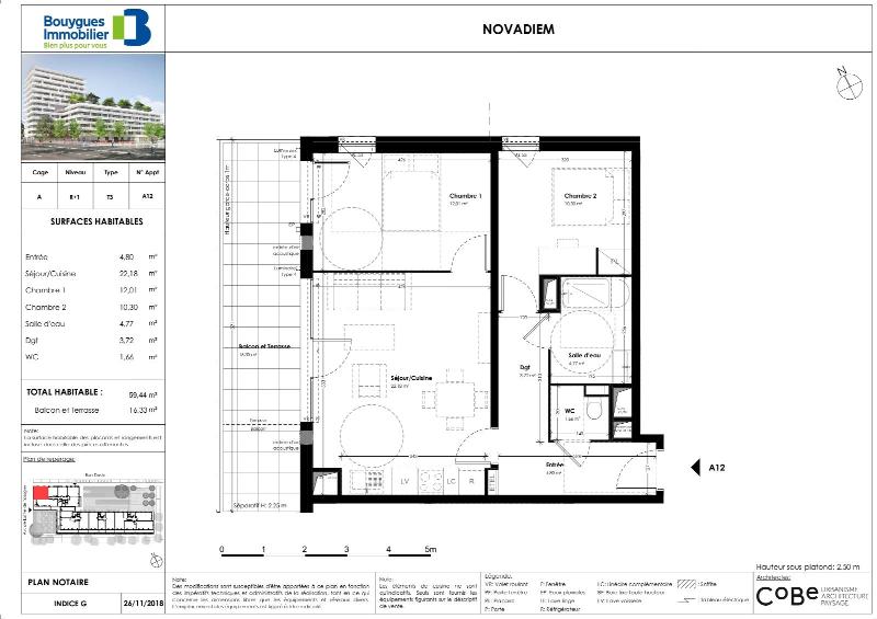 Grand Studio non meublé de 34.12m², situé au 5ème étage sur 6 avec 2 ascenseurs. Comprenant une entrée a...