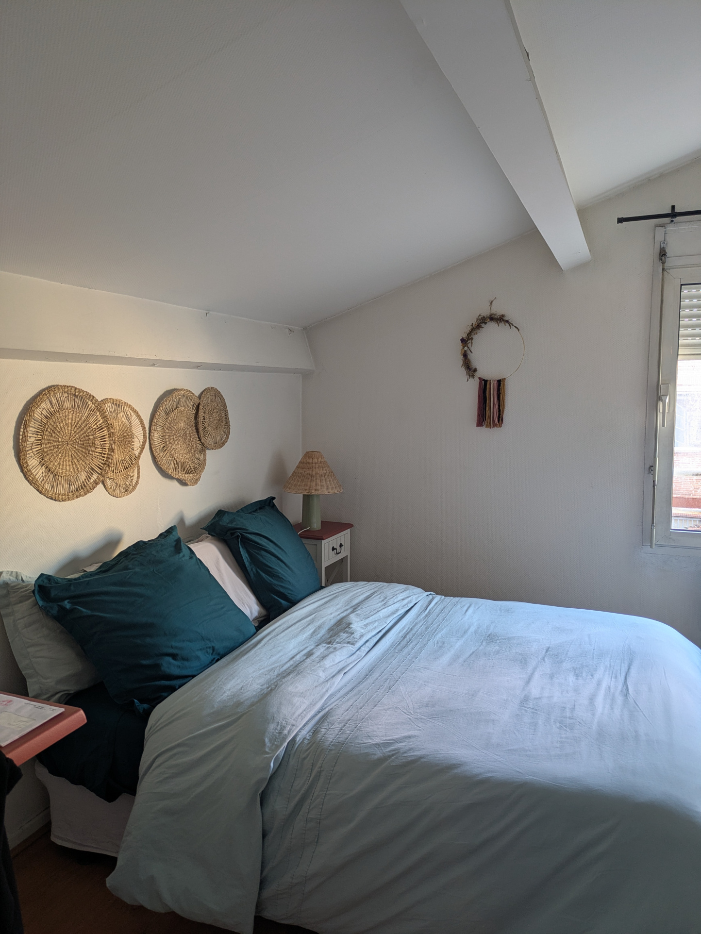 Une chambre meublée en COLOCATION, située au 1er étage, dans un appartement T3 composé d'un salon, d'une cuisine entièrement équipée (avec lave-vaisselle, frigo colonne avec congélateur, four, hotte asp...