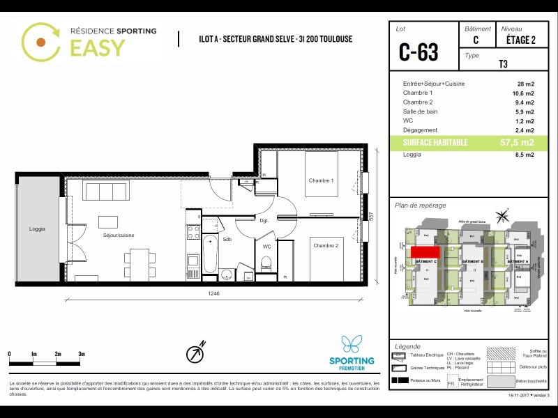 Profitez de notre offre exceptionnelle, nous vous offrons 100 % des frais d'agence !!! T3 de 57,40 m2 - secteur Toulouse - Grand Selve RESIDENCE BBC neuve(Bâtiment Basse Consommation) >> réduisez vos factures énergétiques. Appartement situé e...