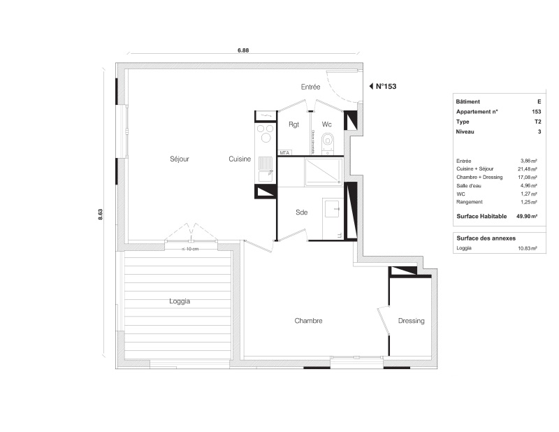 L'appartement se compose de trois pièces, dont deux chambres spacieuses, parfaites pour accueillir vos nuits paisibles. Le salon, d'une superficie de 29,2 m², est un espace lumineux...