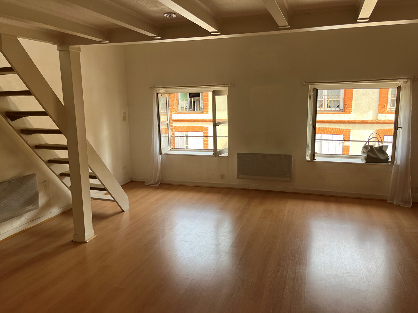 CAPITOLE/SALENGRO Agréable T2 en duplex de 48m2 dans hotel particulier au 3ème et dernier étage avec ascenseur, comprenant un grand séjour avec parquet et briques apparantes, cuisine é...