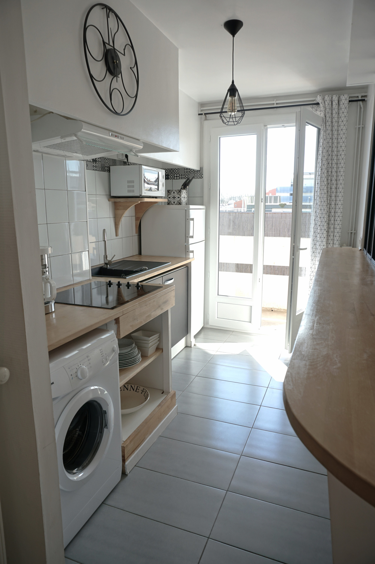 Appartement T2 meublé situé au 7ième étage. Il se compose d'une entrée, une cuisine ouverte sur le séjour, une chambre avec grand placard, une salle de bains, des WC, un cellier et un balcon.