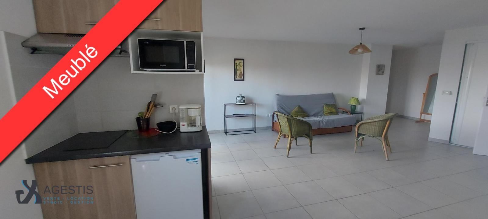 Situé au 3ème étage avec ascenseur, appartement de type 2 entièrement meublé. Il se compose d'une entrée, d'une pièce de vie lumineuse avec coin cuisine équipée, d'une terrasse ensoleillée, d'...