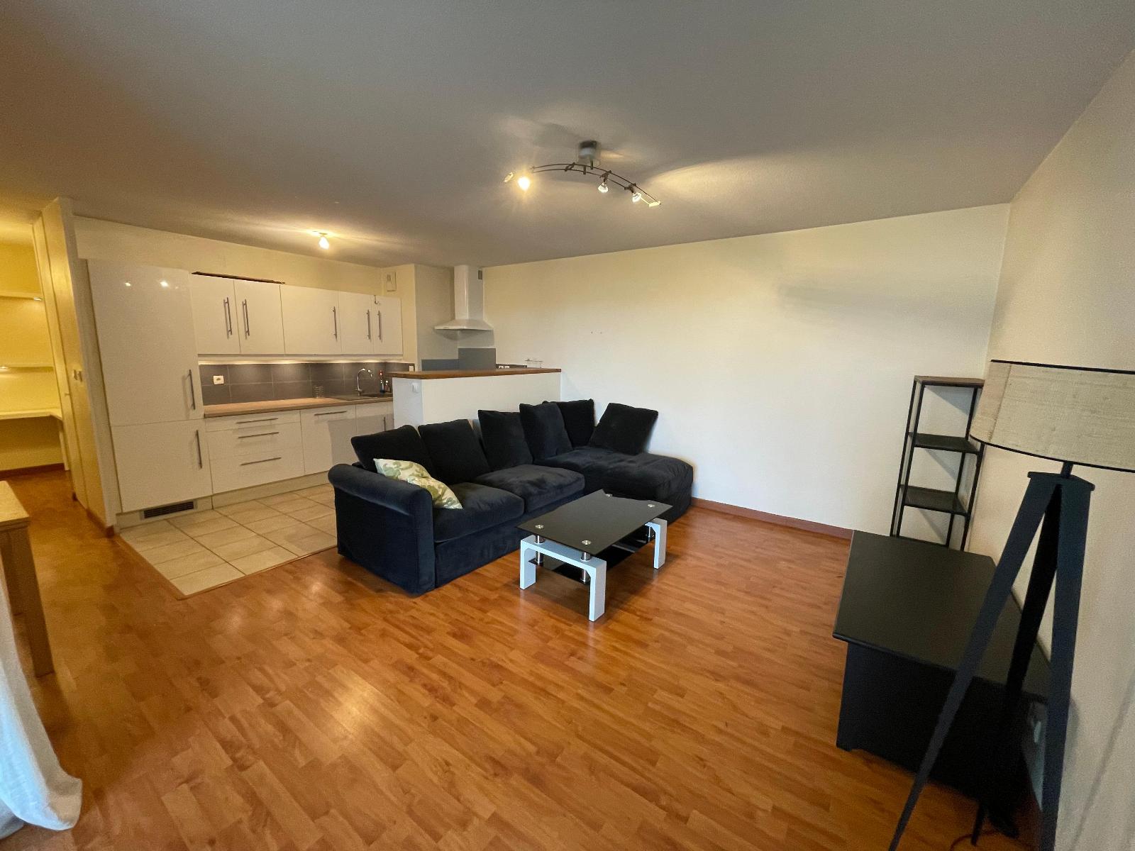 L'appartement se compose d'un salon spacieux de 22,7 m². La cuisine est entièrement aménagée.