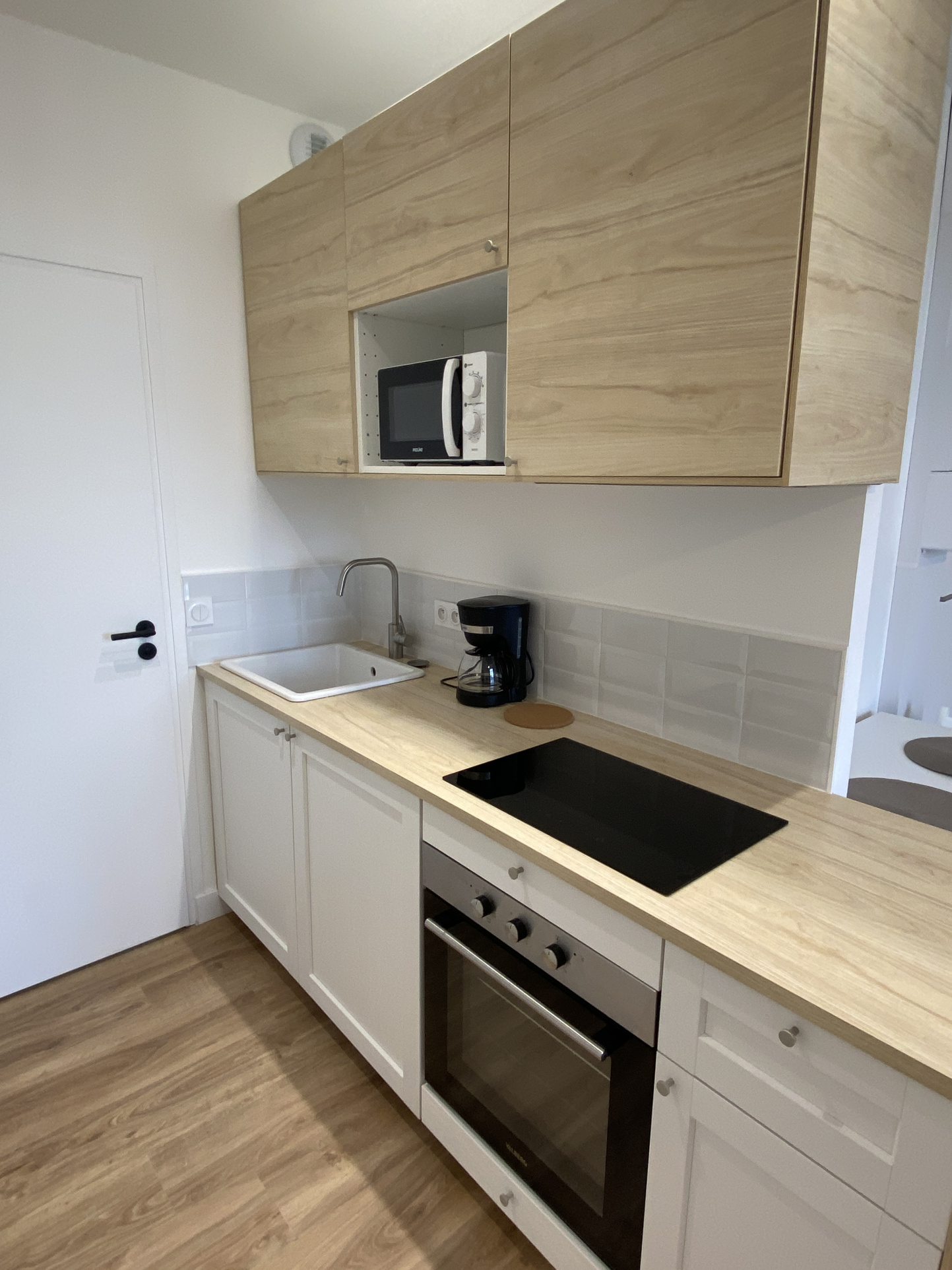 Charmant 2 pièces entièrement rénové et meublé au 1er étage d'un petit immeuble dans une rue calme. Il se compose d'une pièce ...
