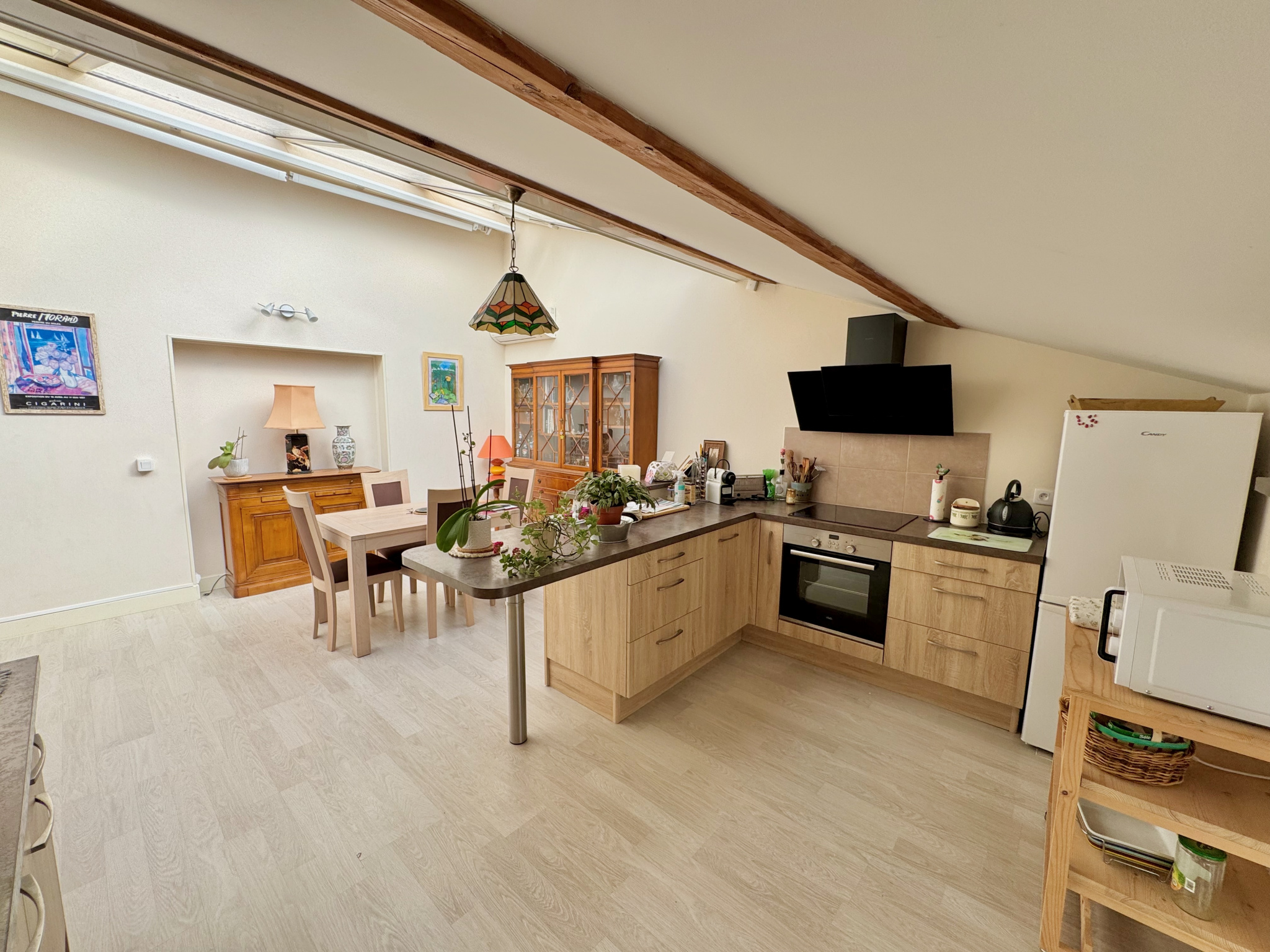 Appartement T2 de 43.82m2 habitables au 2ème étage d'une résidence calme , comprenant un séjour avec une cuisine ouverte de 22.14 m2 aménagée et équipée d'une hotte, une plaque de cuisson 4 feux vitrocéramique et de meubles de rangement, une chambre ...