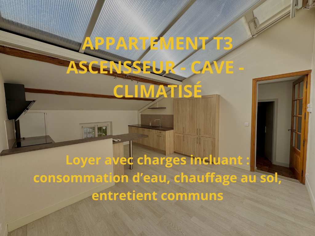 Exclusivité à louer Spacieux appartement T3 - Charges comprises (eau chaude - eau froide - chauffage central au sol), avec ascensseur et climatisation de 69,85 m2 situé au dernier étage d'un immeuble en centre ville de VAISON-LA-ROMAINE. Traversant et l...