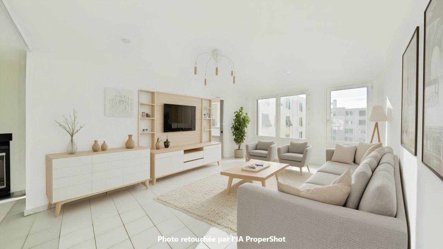 Appartement de type 3 composé d'un séjour, cuisine aménagée et équipée, deux chambres dont une avec climatisation, d'un grand dressing, d'une salle d'eau et de toilettes séparées.