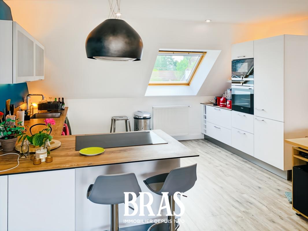 Bel appartement rénové avec goût, 8eme étage d'une résidence sécurisée avec ascenseur dans le quartier des hauts de Kérizac, comprenant entrée, cellier avec arrivée/évacuation lave linge, cuisine entièrement équipée et aménagée donnant sur balcon, double...