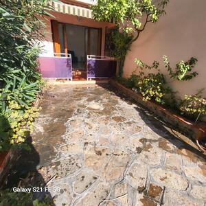 Le Lavandou - Saint-Clair, location à l'année, appartement T2 en rez-de jardin . Il se compose d'une entrée, séjour avec accès balcon et jardin, d'une cuisine, d'une chambre, d'une salle d'eau et d'un wc indépendant. Climati...