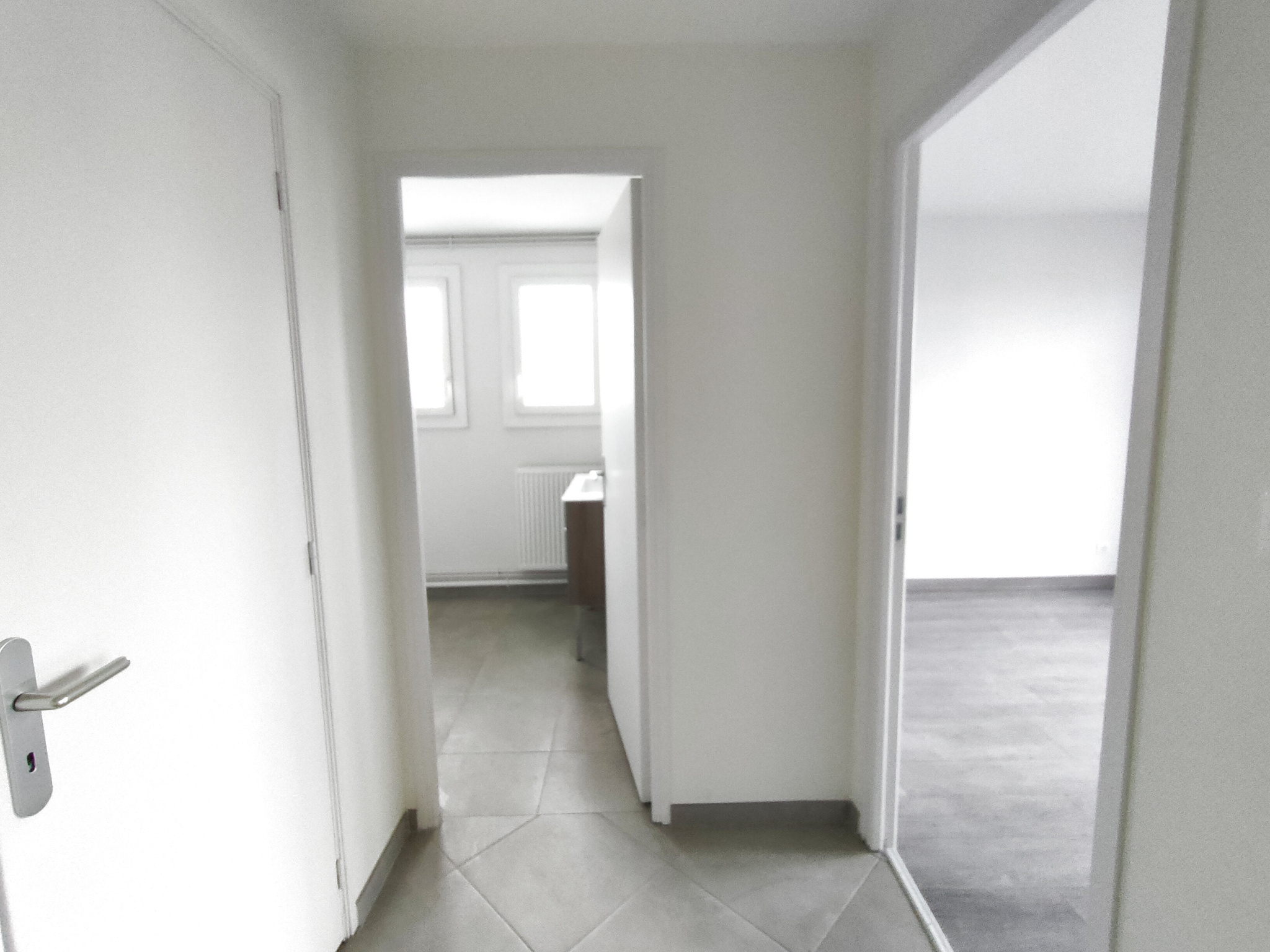 Bel appartement F3 au 1er étage 64 m2 comprenant une entree avec placards donnant sur un grand séjour avec coin cuisine, deux chambres dont une avec placard, salle d'eau, WC.