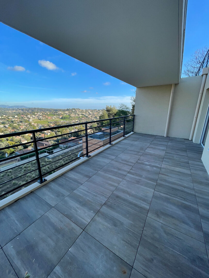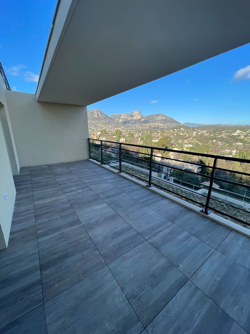 A quelques pas du centre-ville de Vence, dans une résidence neuve et sécurisée, bel appartement de deux pièces principales d'environ 43m2, bénéficiant d'une large vue panoramique et comprenant : entrée avec placard, séjour donnant sur une grande terr...