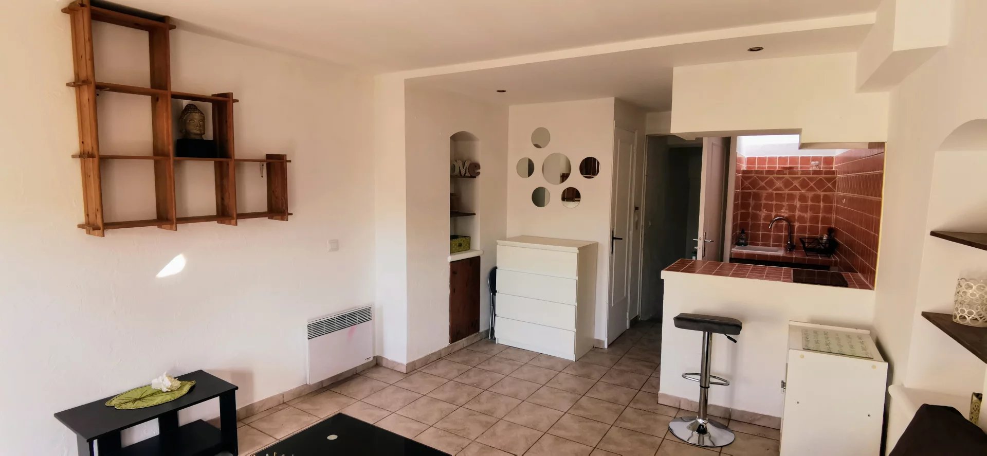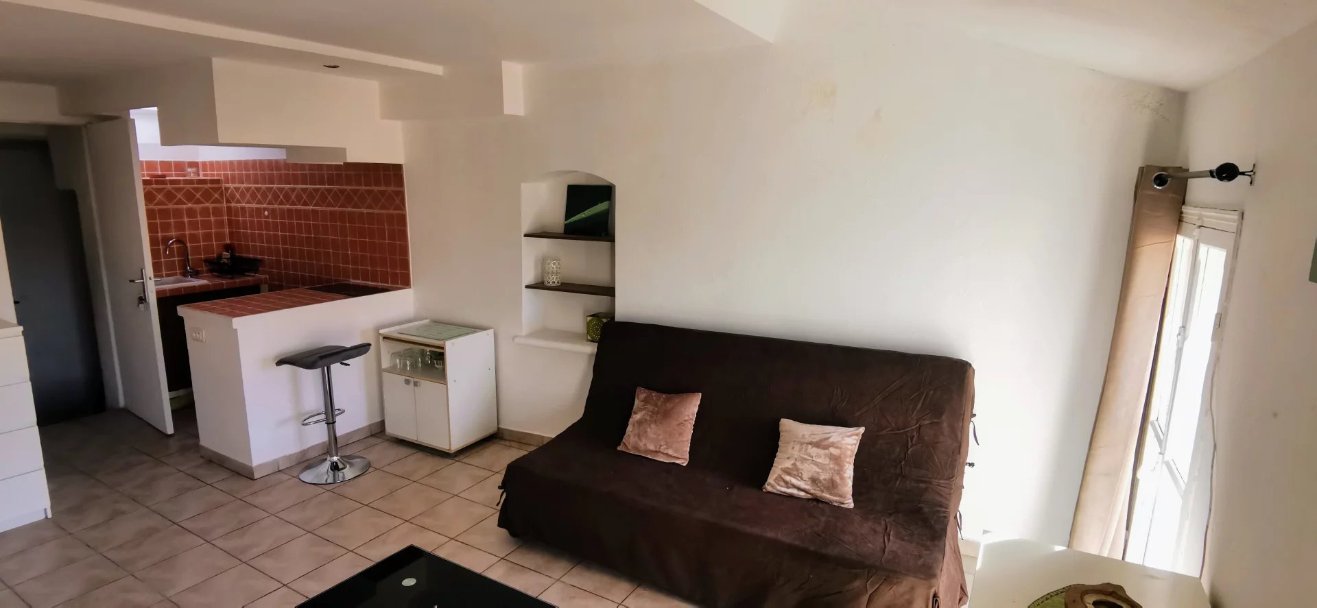 VENCE - Dans une résidence sécurisée avec gardien et piscine, charmant appartement en duplex comprenant: entrée avec placard, pièce principale avec coin cuisine équipée, salle d'eau avec WC, coin couchage en mezzanine.