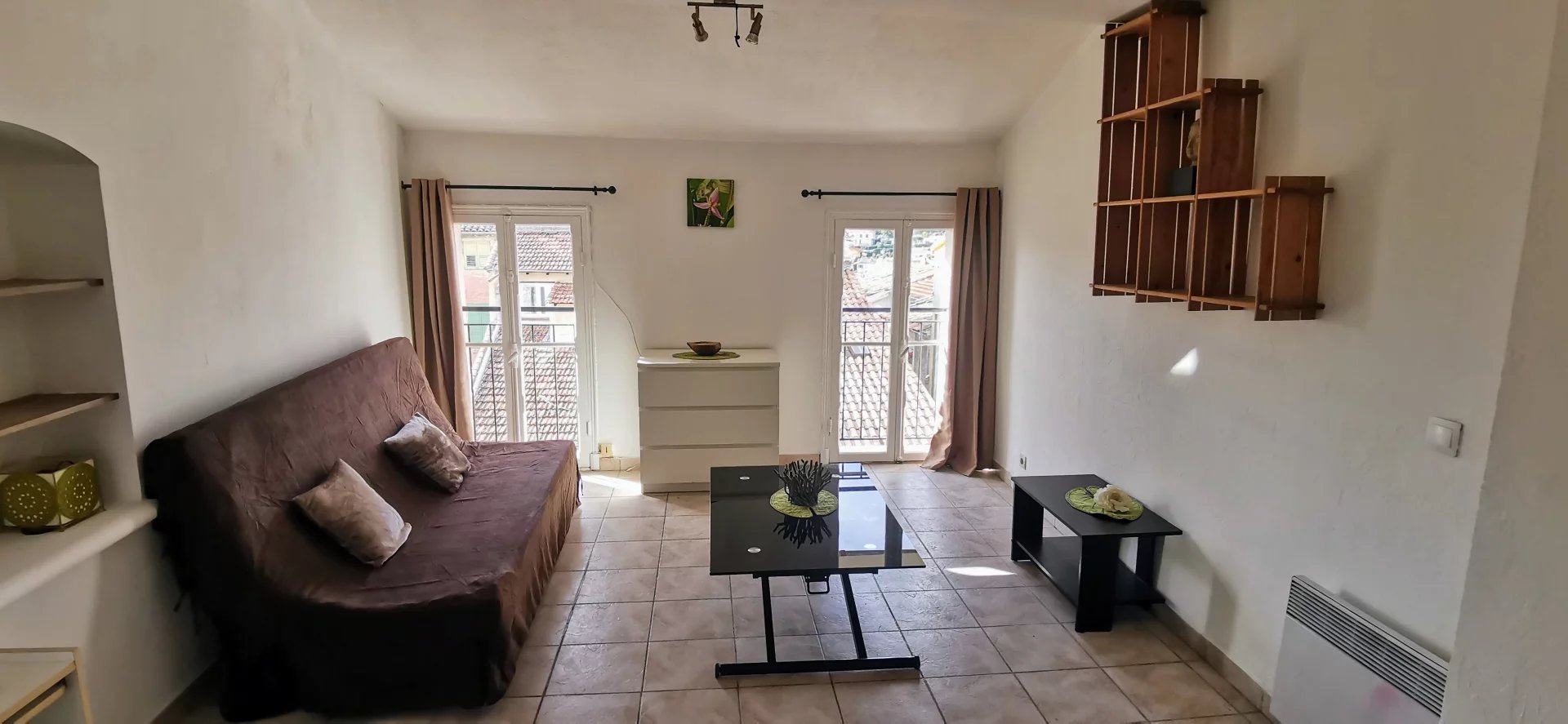 Au calme, appartement 3P dans une maison divisée comprenant: Un séjour avec cuisine ouverte, un dégagement avec placards, 2 chambres dont une avec placard et une salle de bains avec wc. Terrasse et jardin avec barbecue, jolie vue sur la vieille ville de Vence....