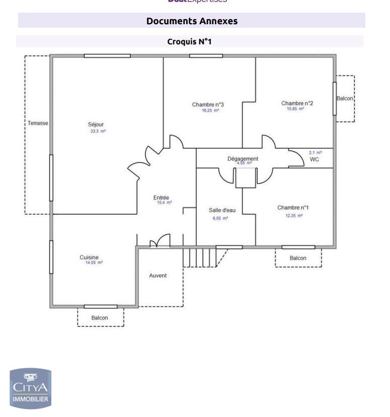 Ce bien immobilier dispose d'une surface habitable de 114 m², comprenant : une grande entrée avec placard, un séjour avec balcon, une cuisine séparée aménagée et équipée, un d...