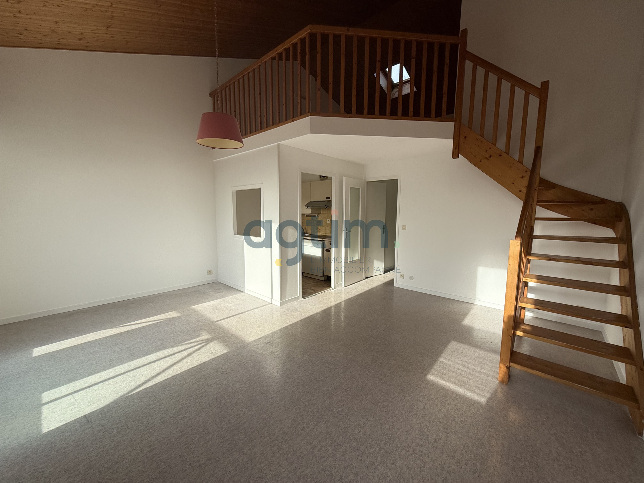 Appartement T3 comprenant : entrée ave placard, séjour ouvrant sur balcon, kitchenette, une chambre avec placard, salle de bains, wc et une mezzanine. Cave.