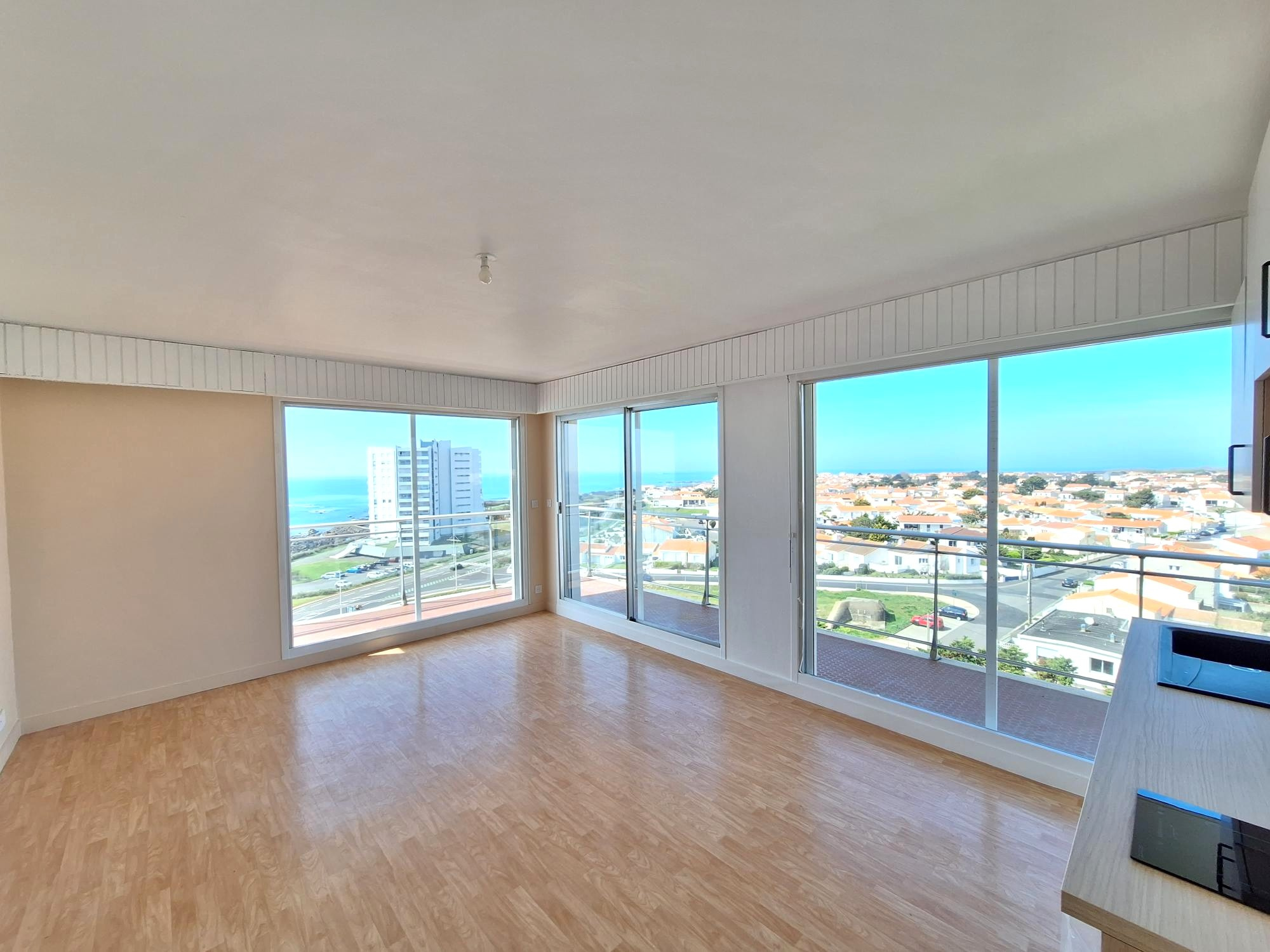 Situé au 9ème étage de la résidence avec ascenseur, appartement refait à neuf de T1 bis, d'environ 35 m2, il vous offrira une entrée, un séjour salon avec une cuisine ouverte aménagée et équipée donnant sur un beau balcon de 16 m2 donnant sur la mer, un c...