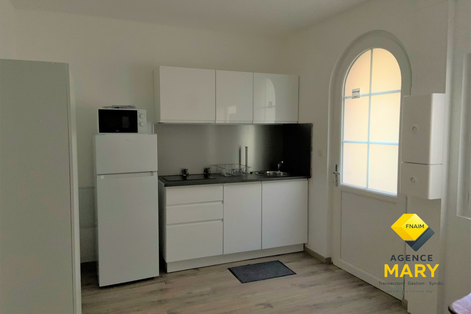 Appartement MEUBLE type 1, au rez-de-chaussée d'un immeuble sur cour, comprenant entrée sur la pièce principale, coin cuisine, salle d'eau et wc.