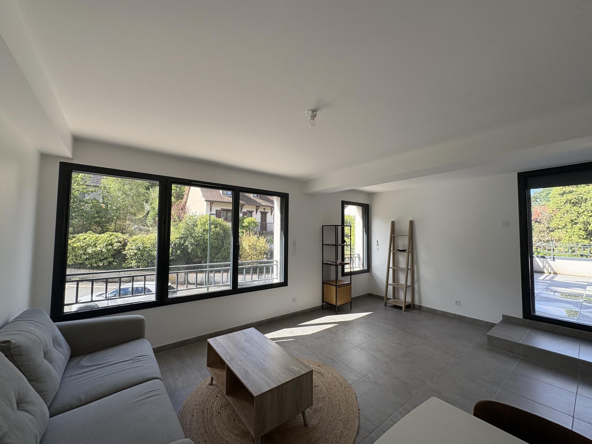 10' RER, petit immeuble récent, appartement 2 pièces rénové comprenant: coin cuisine, séjour avec terrasse, une chambre, salle d'eau avec wc.