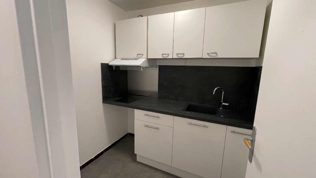 15' RER, petit immeuble récent standing, Appartement 2 Pièces comprenant entrée, coin-cuisine, séjour, terrasse, chambre, salle d'eau avec wc.