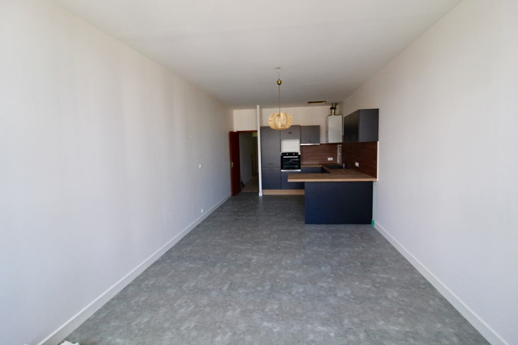 Appartement de type T2 en bon état de 45m2 comprenant une grand pièce à vivre, une chambre avec placard, un coin cuisine...